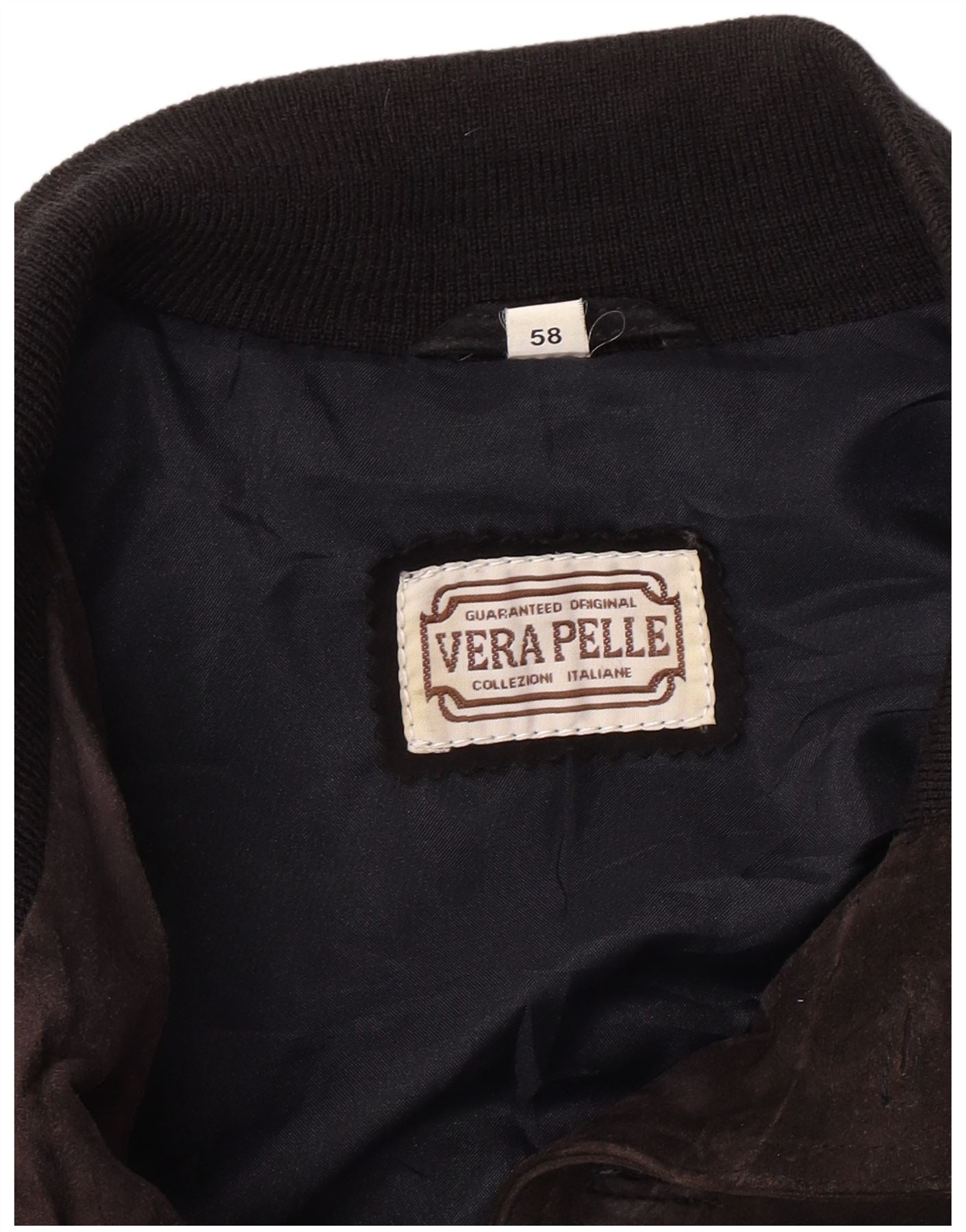 VINTAGE Herre Ruskind Bomber Jacket IT 58 4XL Navy Blue Læder