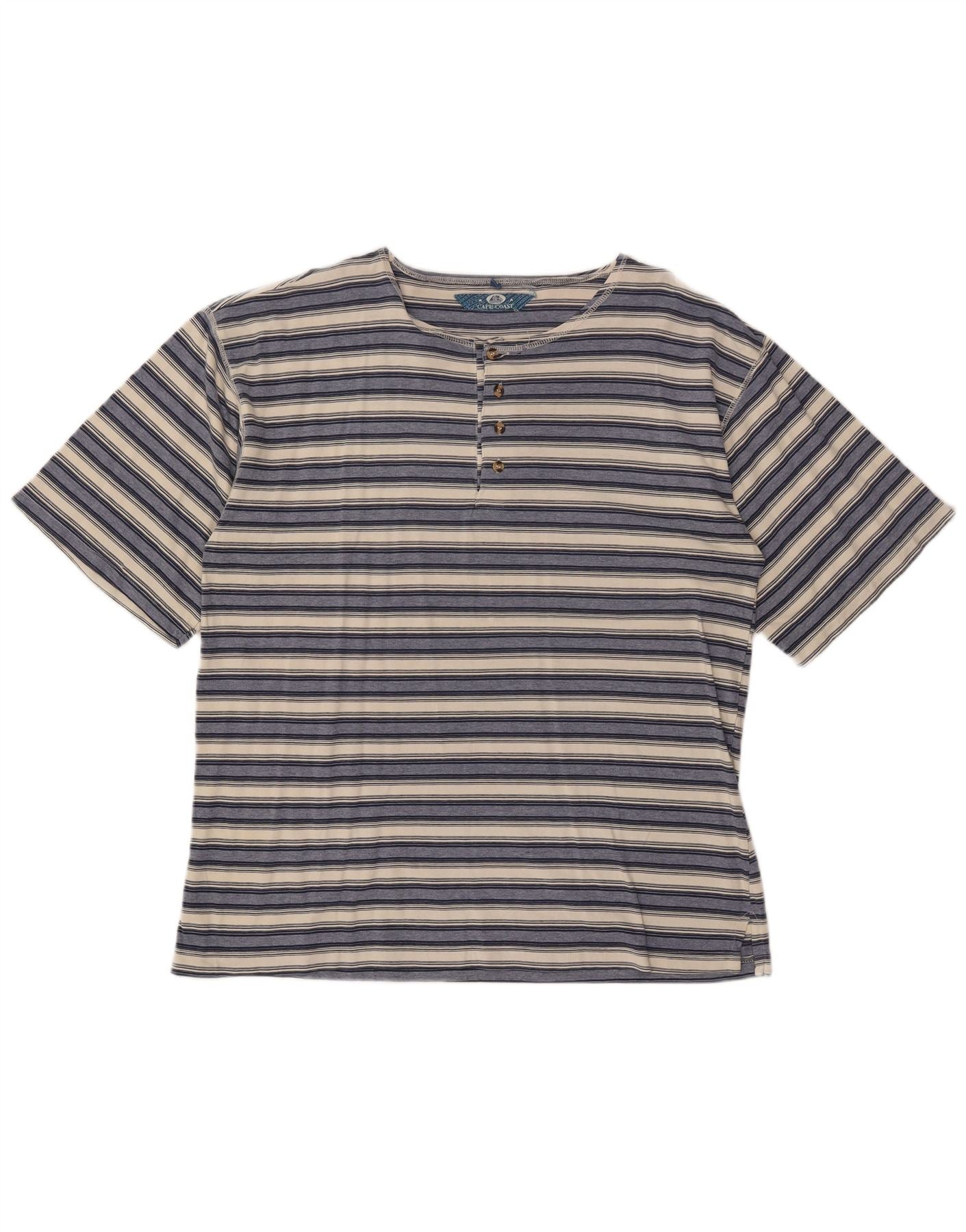 VINTAGE herre T-shirt top XL marineblå stribet bomuld