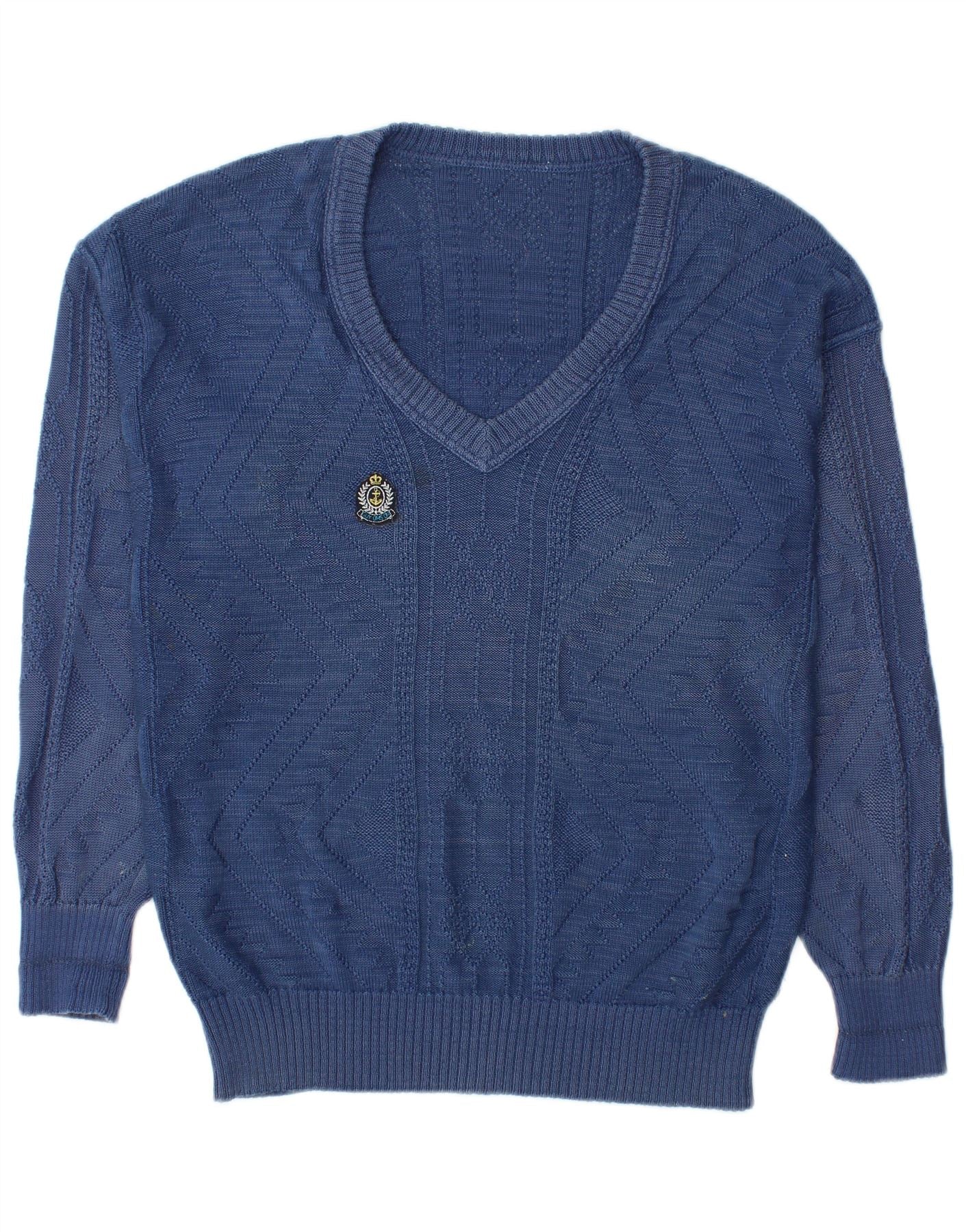Vintage Herre V-hals sweater IT 48 Medium Blue Bomuld