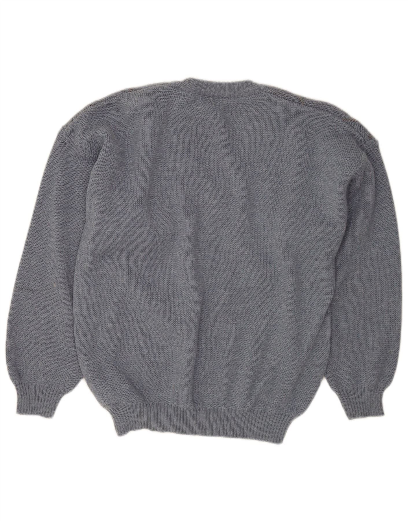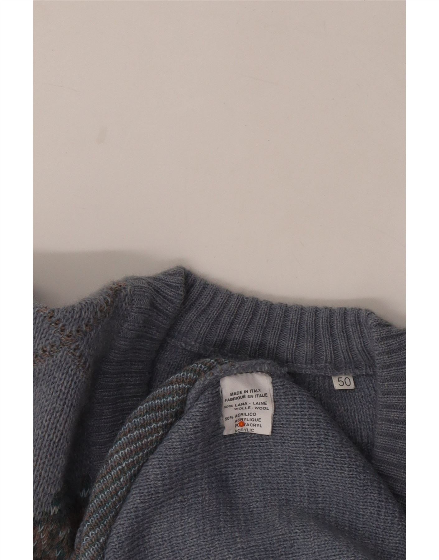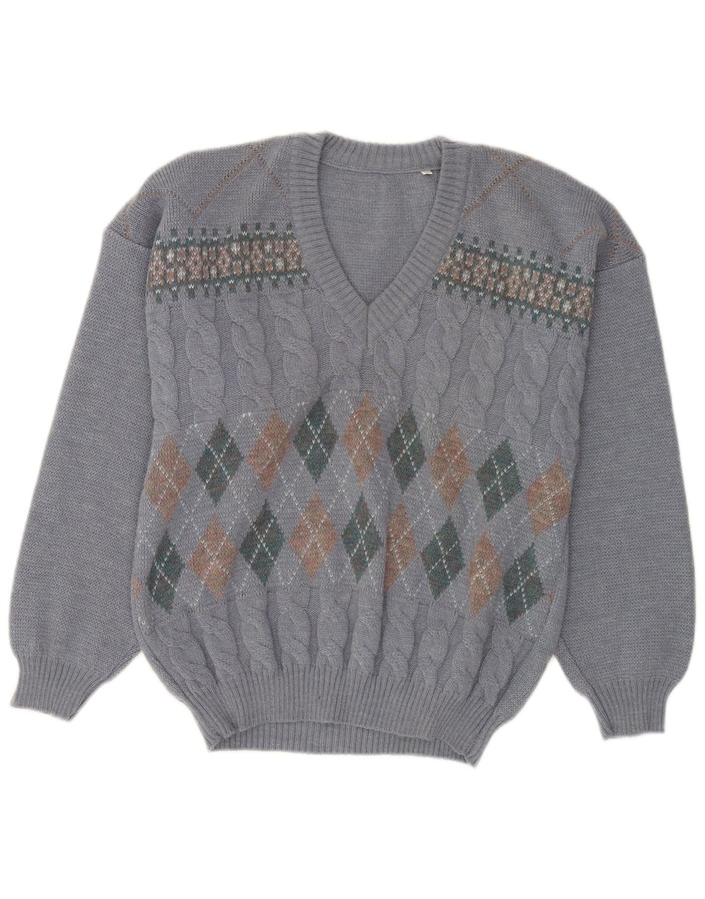 VINTAGE Herre V-hals sweater IT 50 Medium Blue Argyle/Diamond Wool