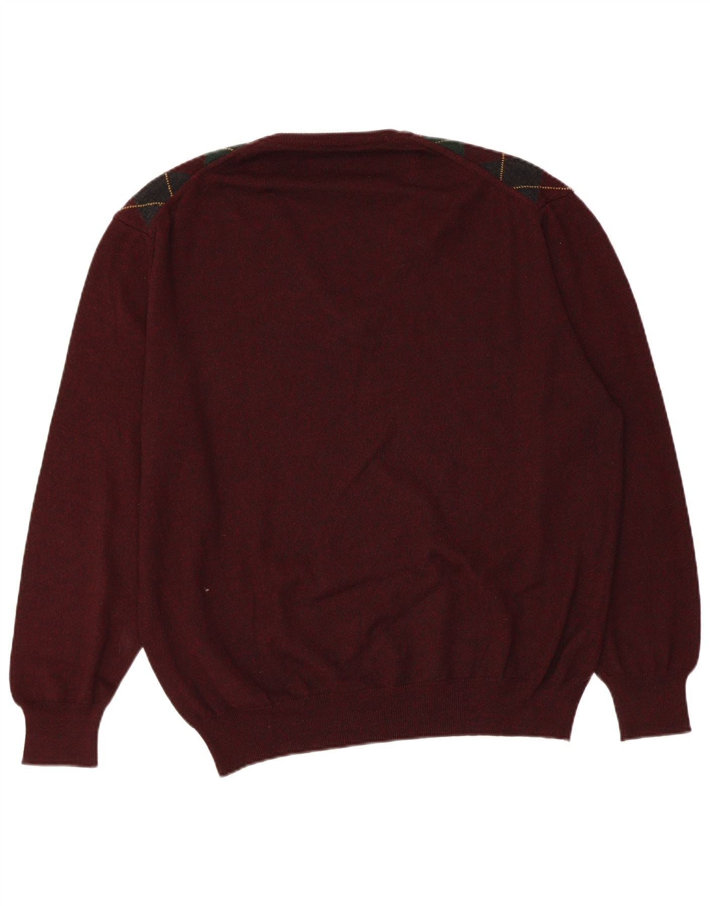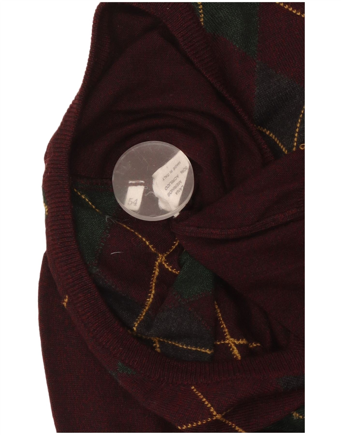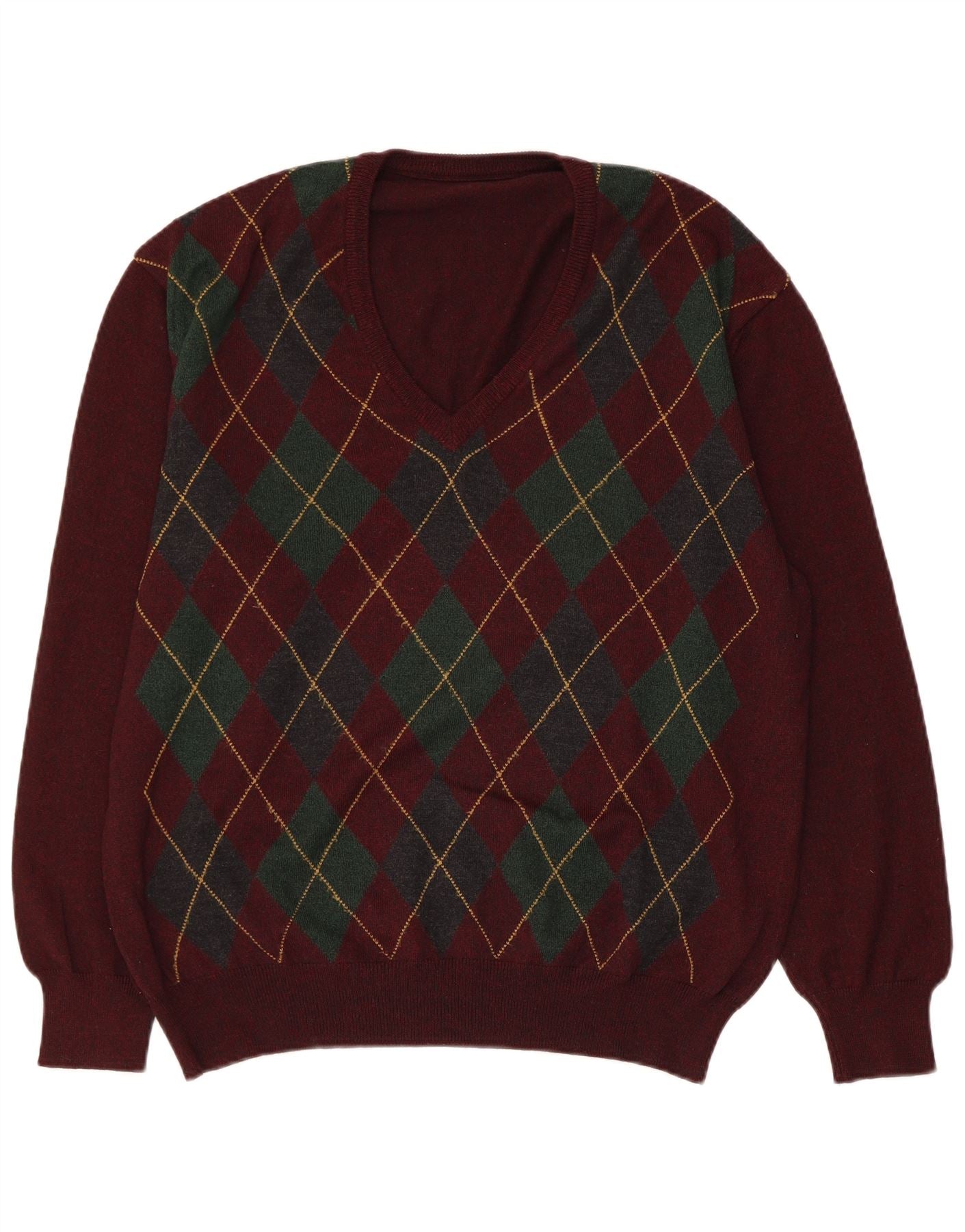 VINTAGE Herre V-hals sweater IT 54 XL Maroon Argyle/Diamond Wool