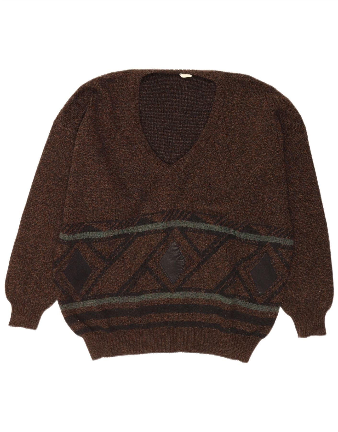 VINTAGE Herre V-hals sweater Stor Brun Argyle/Diamant