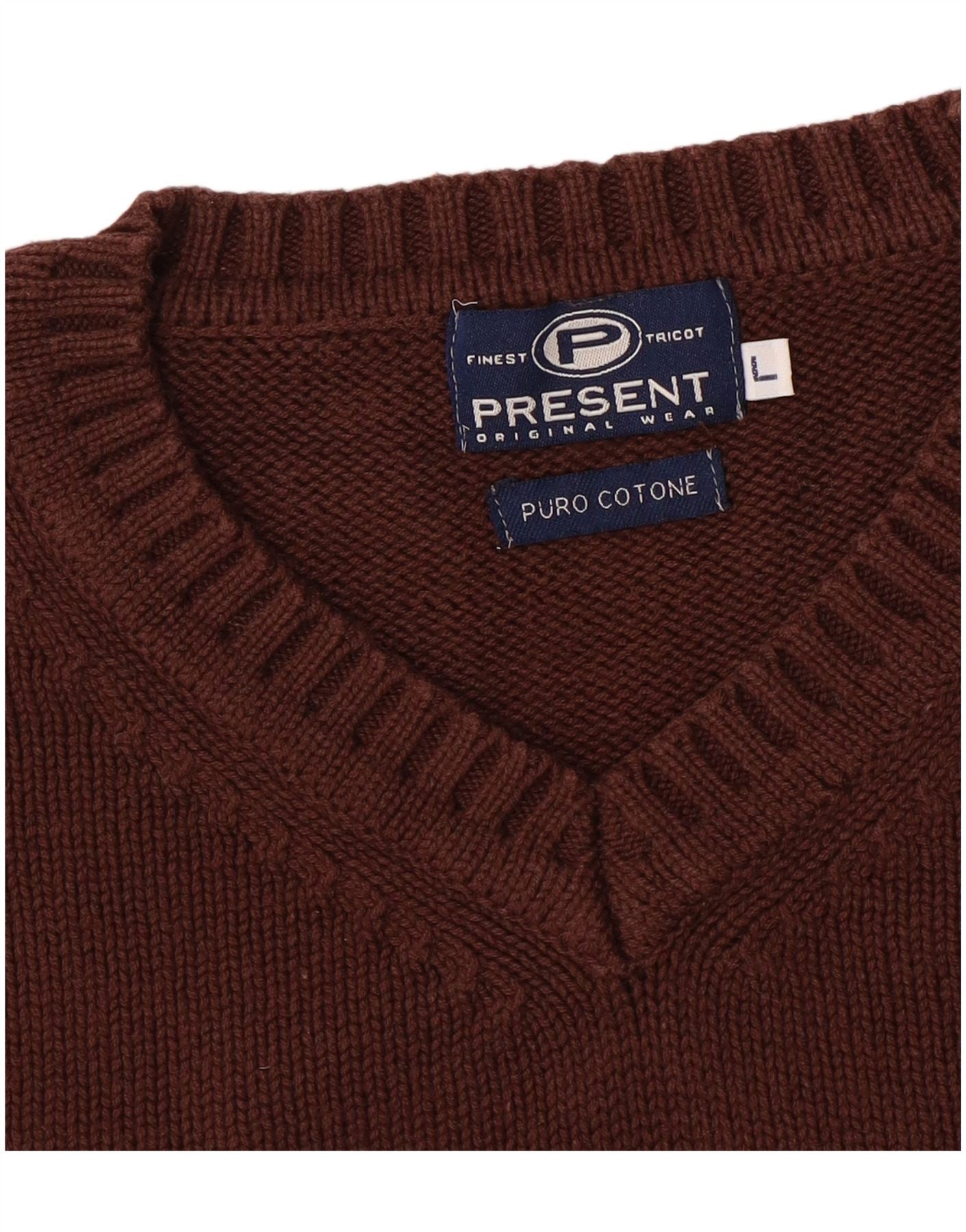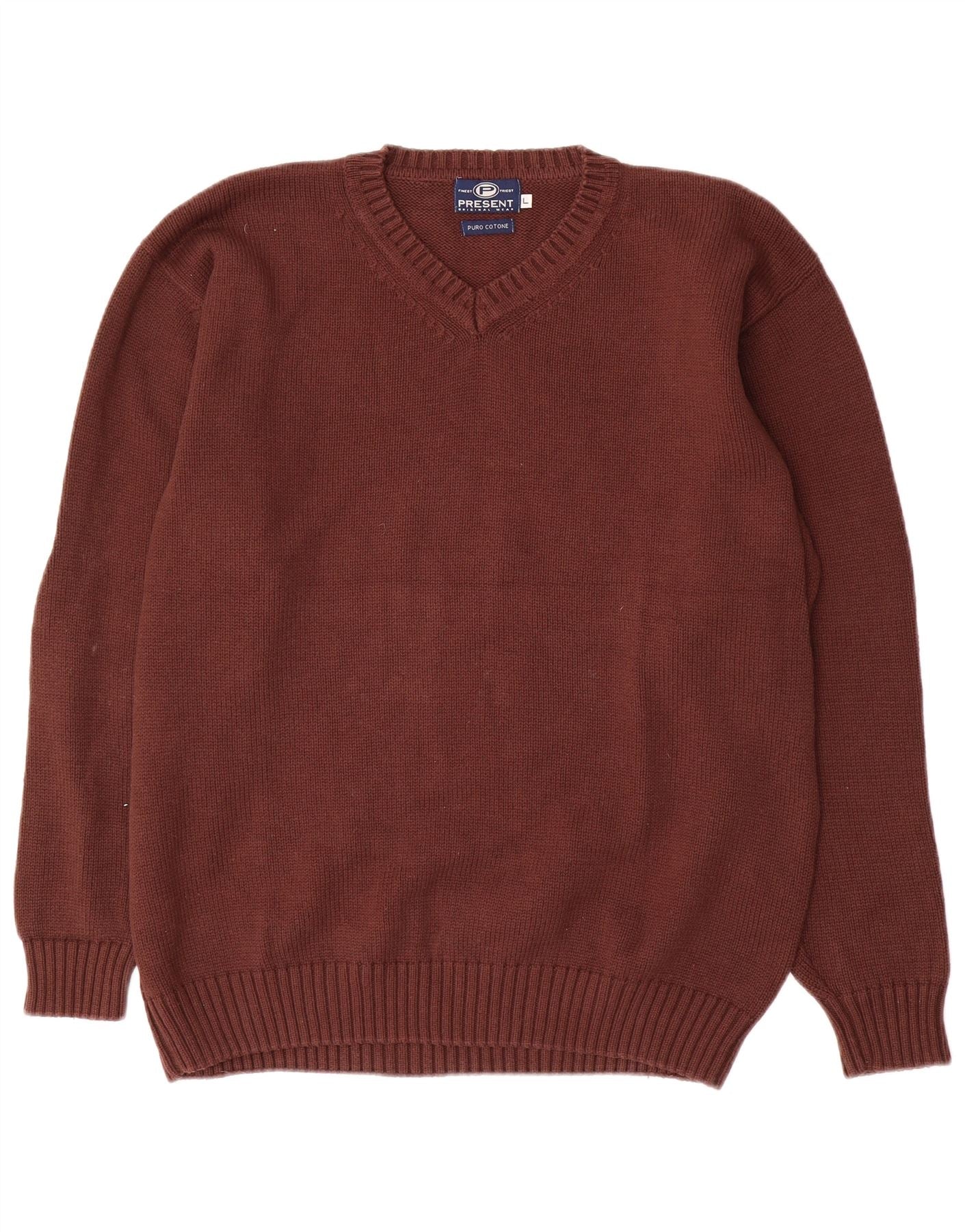 VINTAGE Herre V-hals sweater Stor brun bomuld