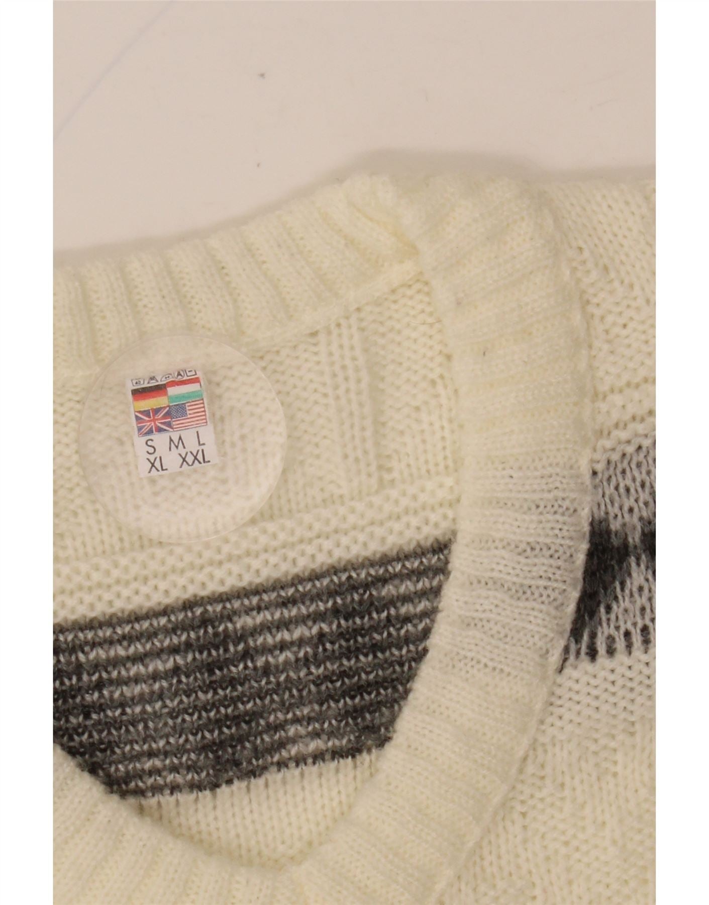 VINTAGE Herre V-hals sweater Large Off White Fair Isle
