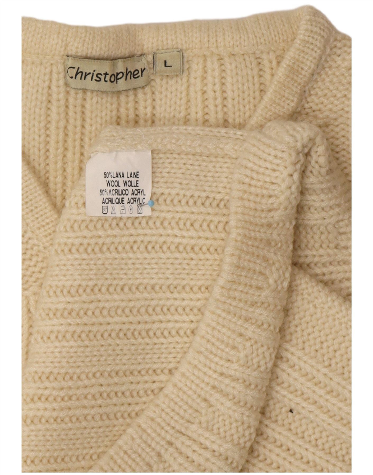 VINTAGE Herre V-hals sweater Large Off White Uld
