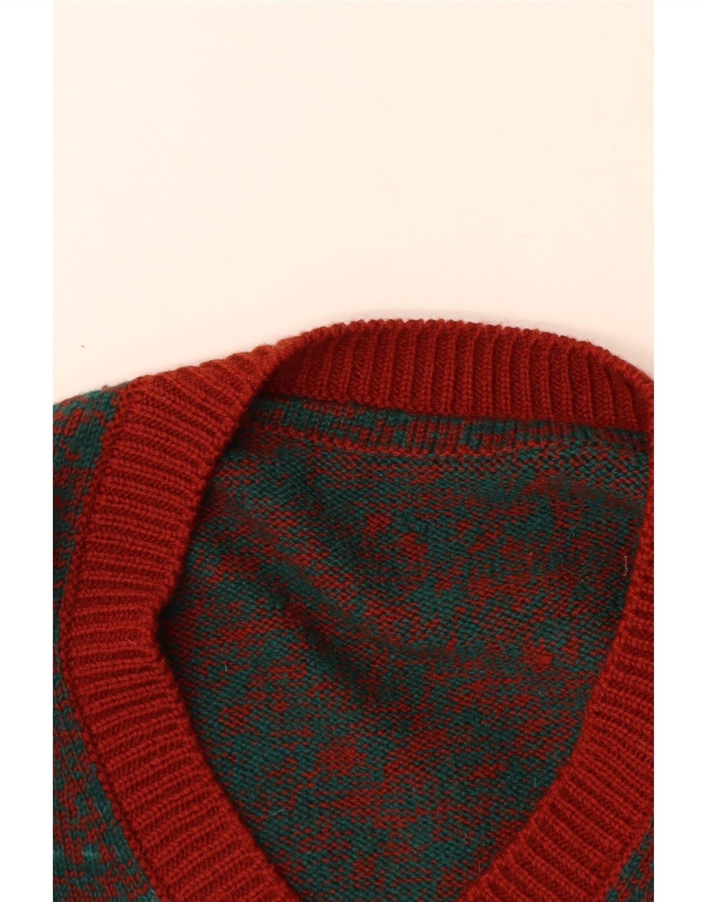VINTAGE Herre V-hals sweater Medium Rød Flecked