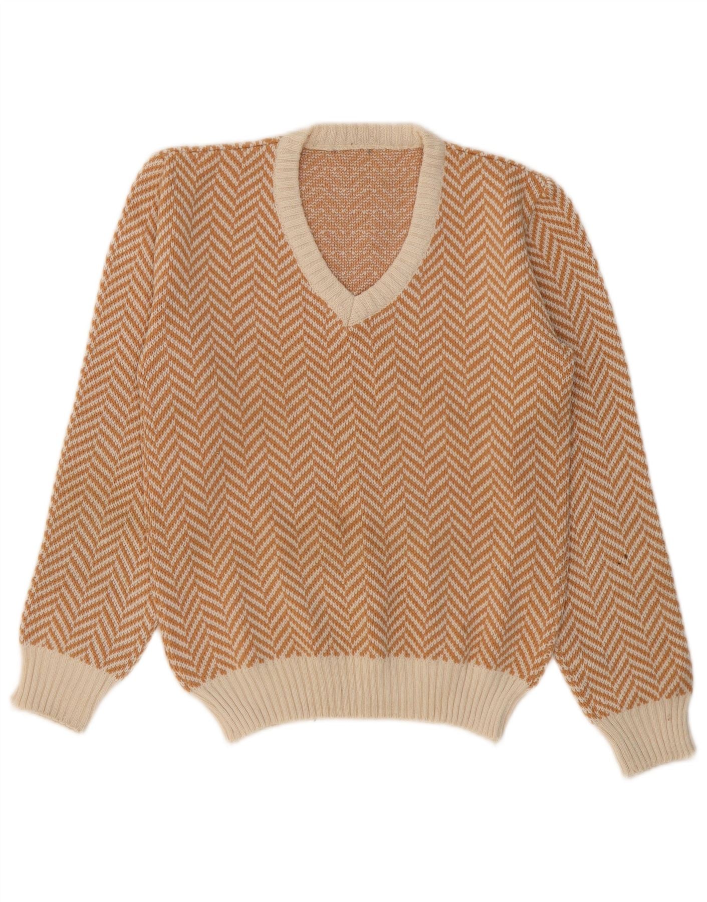 VINTAGE Herre V-hals sweater lille beige sildeben