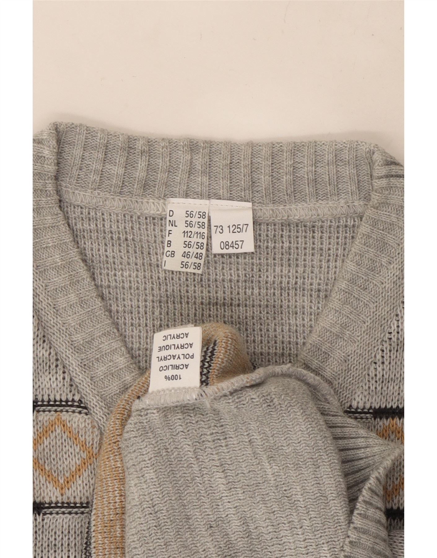 VINTAGE Herre V-hals sweater UK 46/48 2XL Grå Argyle/Diamond