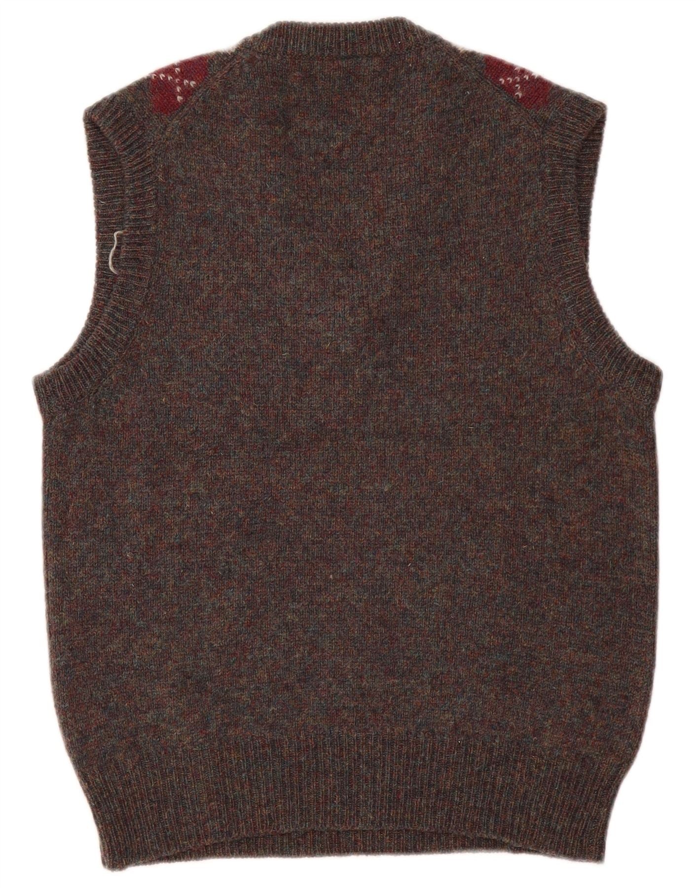 - AI beskrivelse: Denne Target herrevest er lavet af 100 % shetlandsuld og tilbyder en varm, tekstureret strik. Den har en klassisk V-udskæring og et ærmeløst design. Den fyldige brune base er prydet med et markant argylemønster i grå og dybe røde toner. Denne pullovervest tilbyder en behagelig normal pasform, perfekt til et preppy lagdelt look.