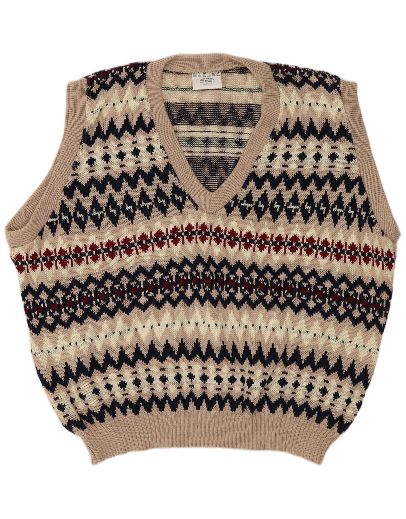 VINTAGE Herrevest Tank Top UK 44/46 XL Navy Blue Fair Isle Akryl