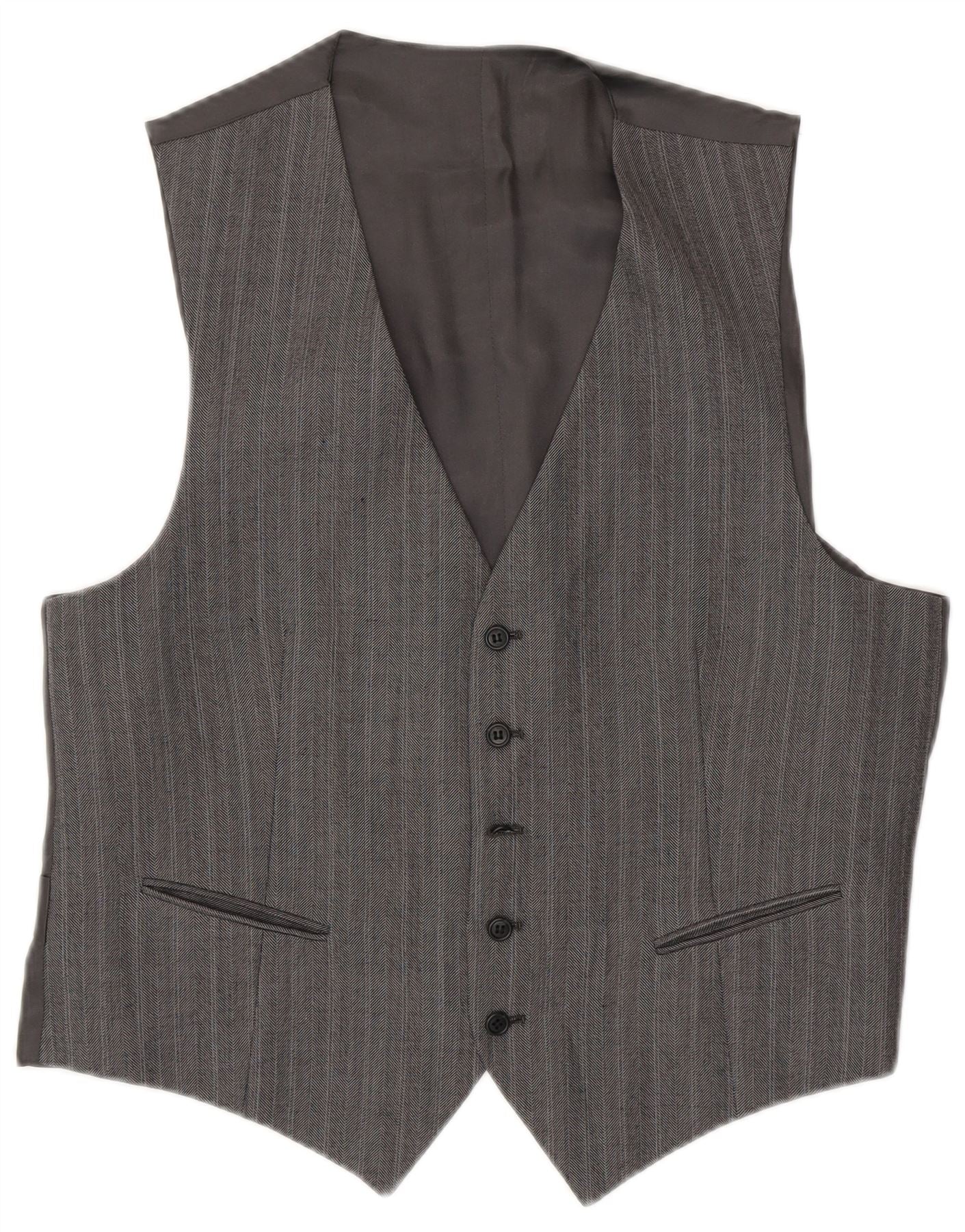 - AI beskrivelse: Denne vintage veste til mænd er lavet af et gråt vævet stof med et diskret nålestribet mønster. Den klassiske V-udskæring og fem-knaps lukning foran giver et raffineret look. Den er ærmeløs med en normal pasform, hvilket sikrer komfort og stil. Praktiske lommer og en foret inderside forbedrer dens funktionalitet. Et justerbart spænde bagpå giver mulighed for en skræddersyet silhuet.