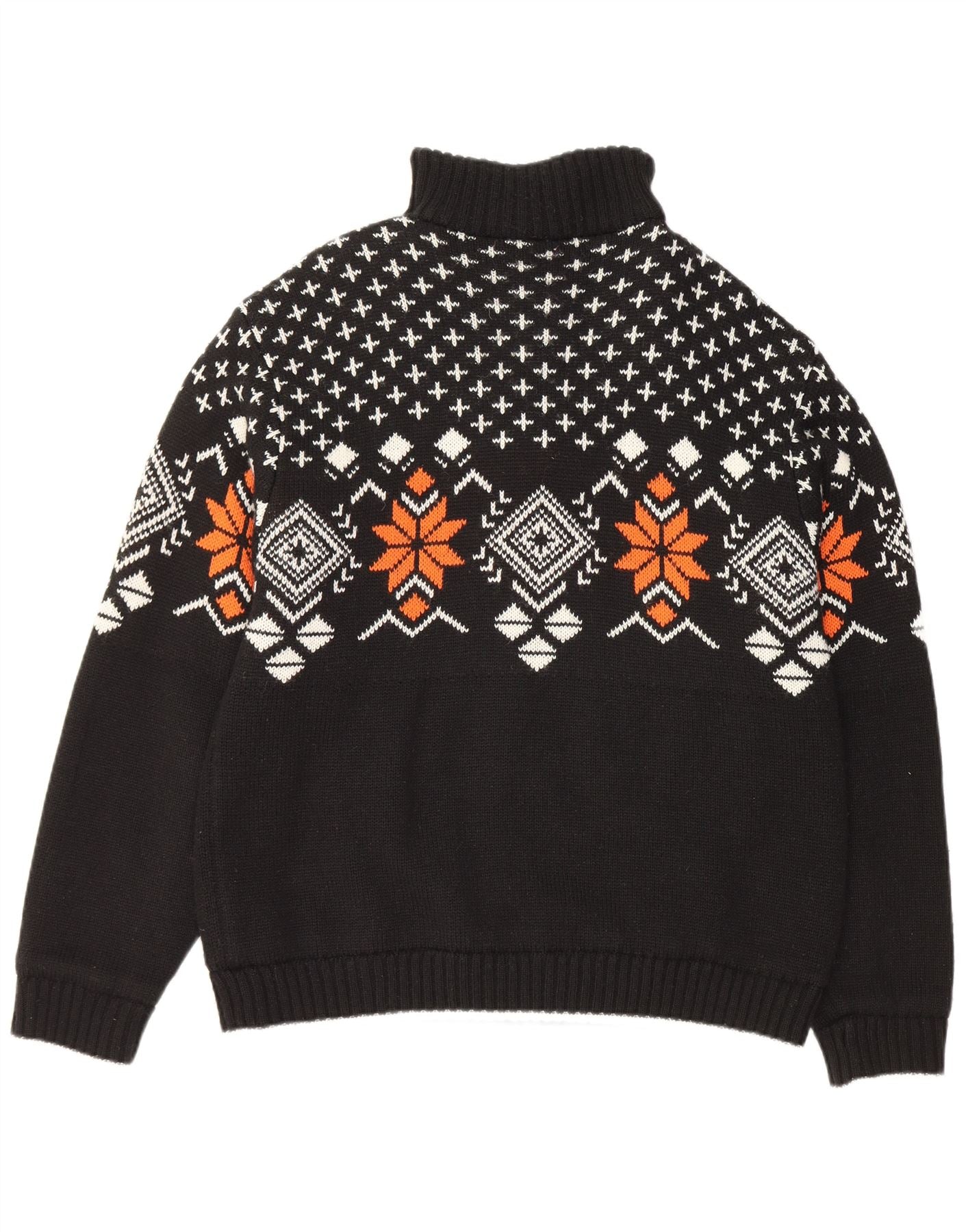 VINTAGE Herre Zip Neck Jumper Sweater IT 52/54 Large Black Fair Isle