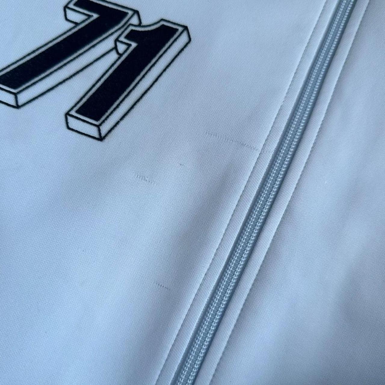 Vintage tidlig 2000'er lynlås tofarvet Nike træningsjakke i babyblå med logo på brystet og stave på ryggen