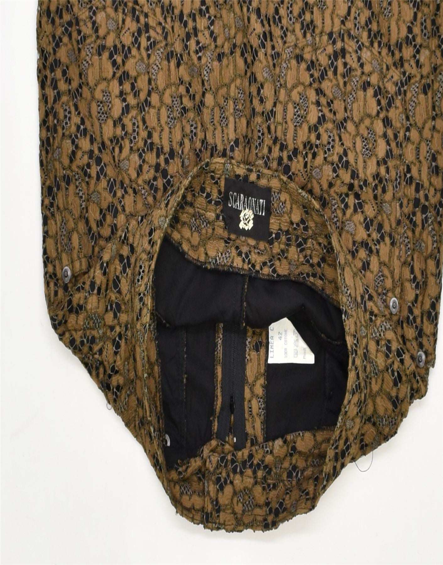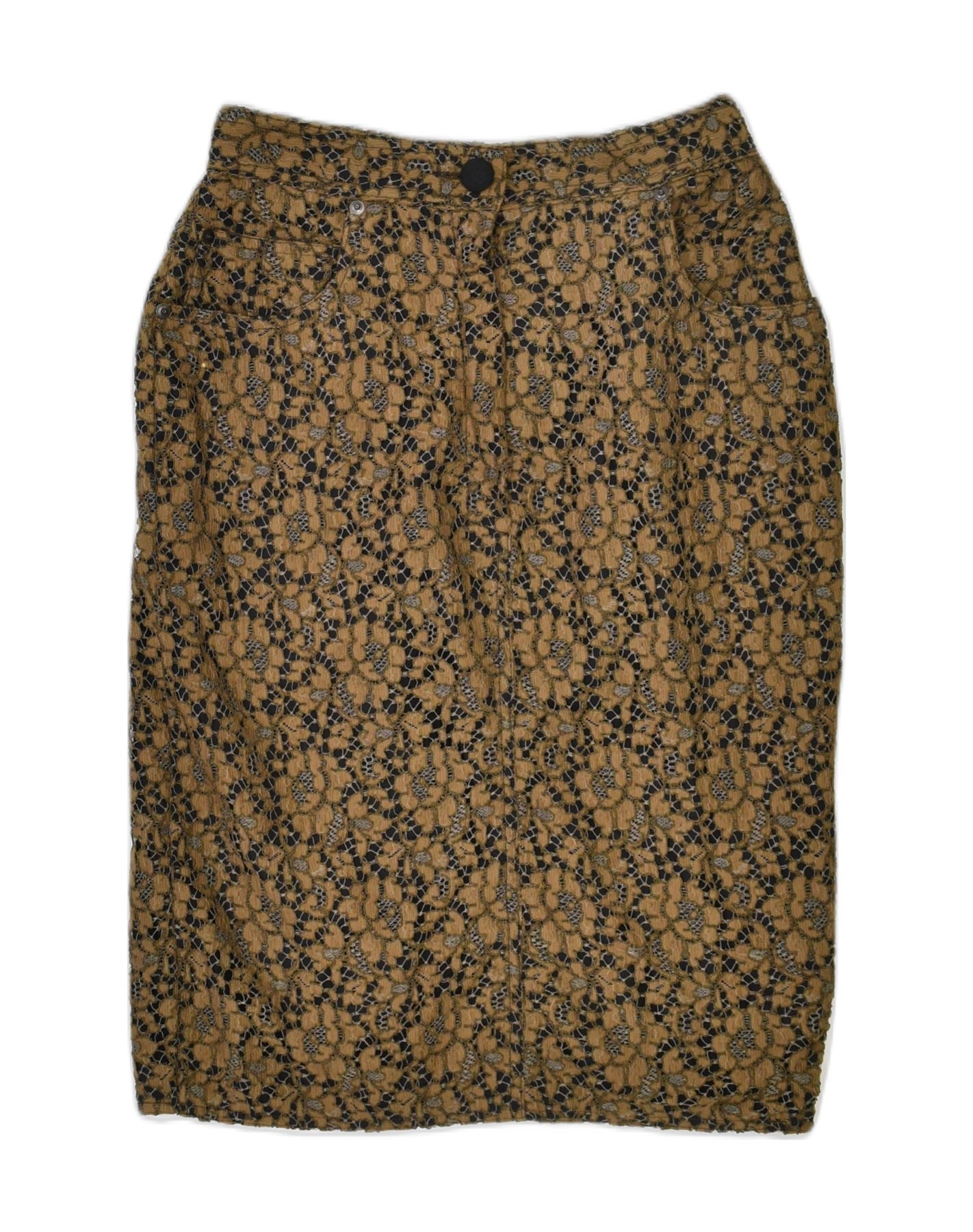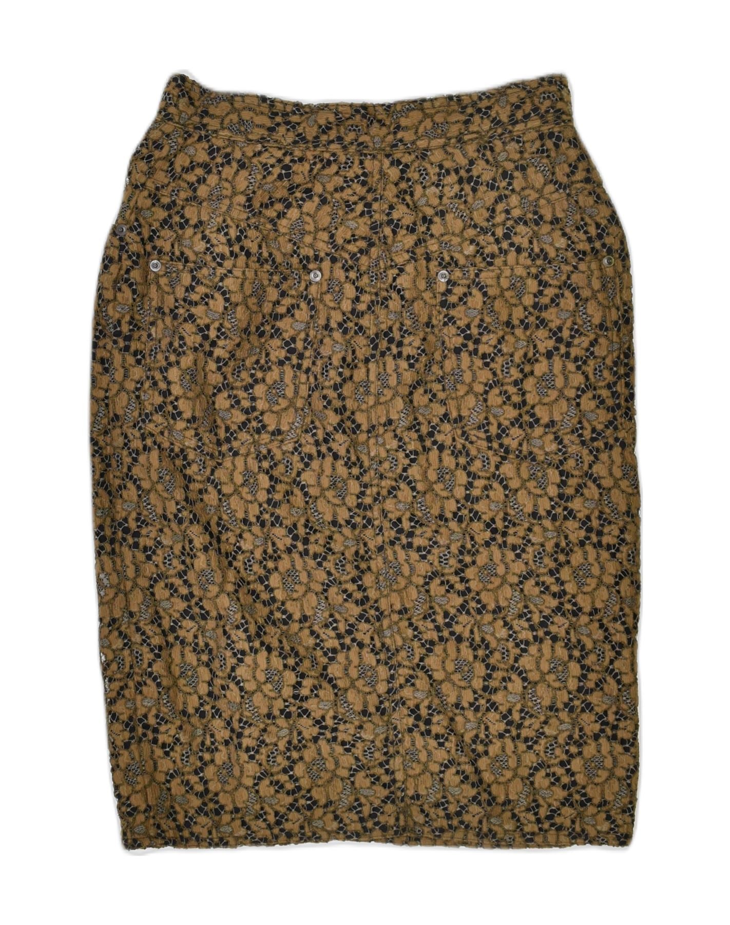 VINTAGE Slim Pencil Skirt til kvinder IT 42 Medium W26 Brun Blomsterbomuld