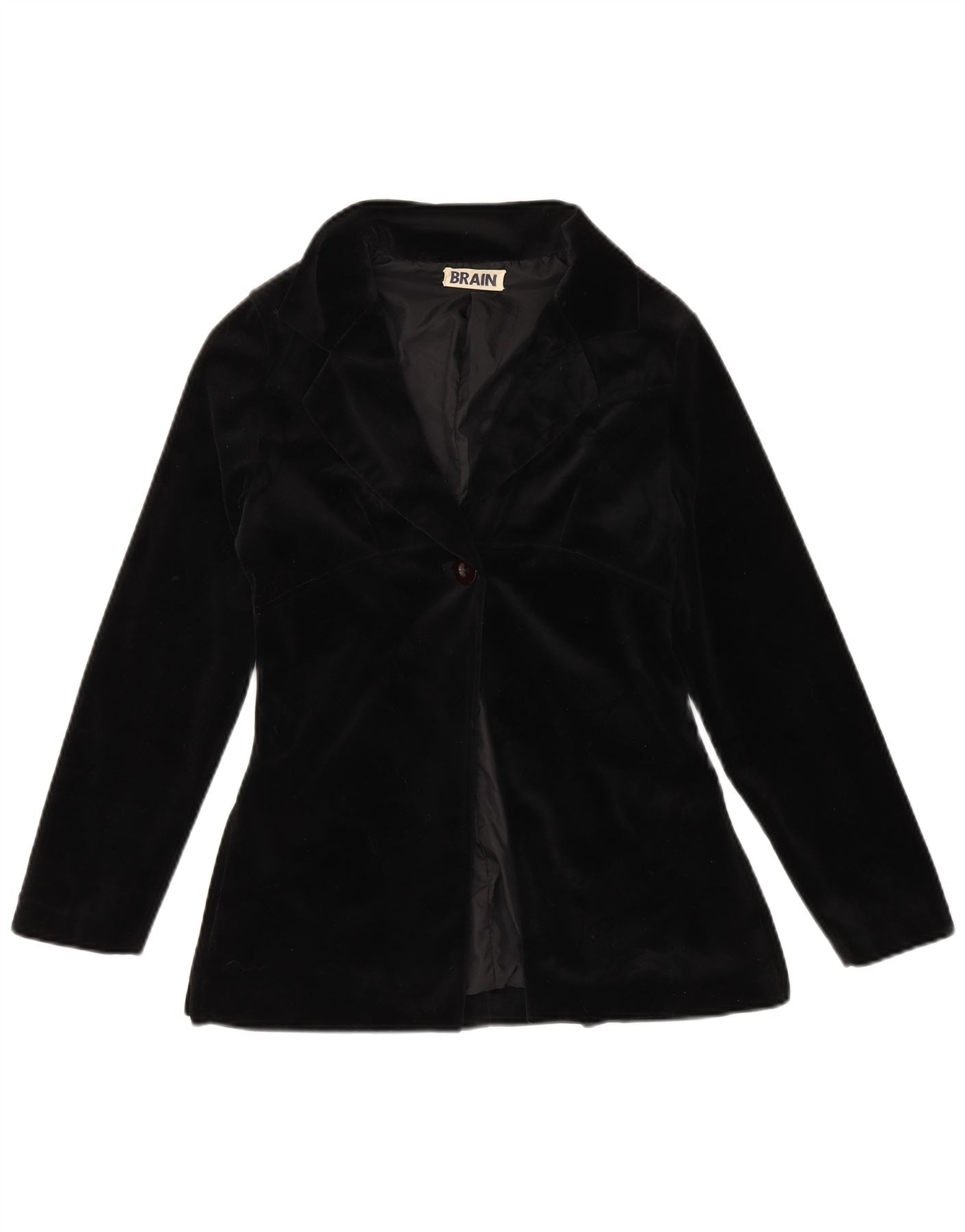 VINTAGE Dame 1-knap Velvet Blazer Jacket UK 12 Medium Black