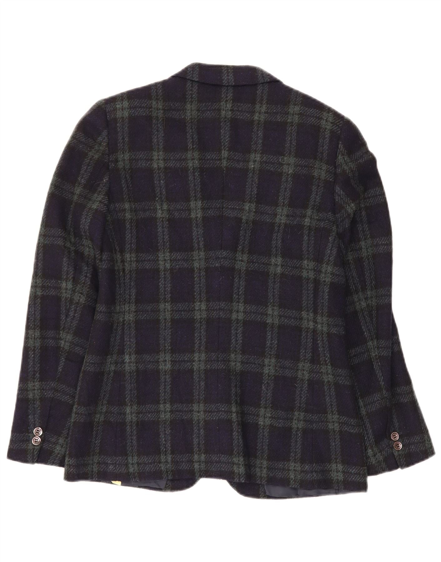 VINTAGE Dame 2-knaps blazerjakke IT 44 Mellem marineblå ternet uld