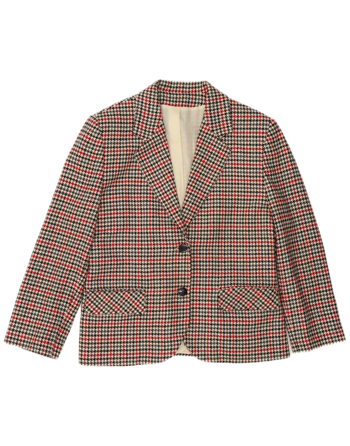 VINTAGE Dame 2-knaps blazerjakke UK 16 Large Beige Houndstooth