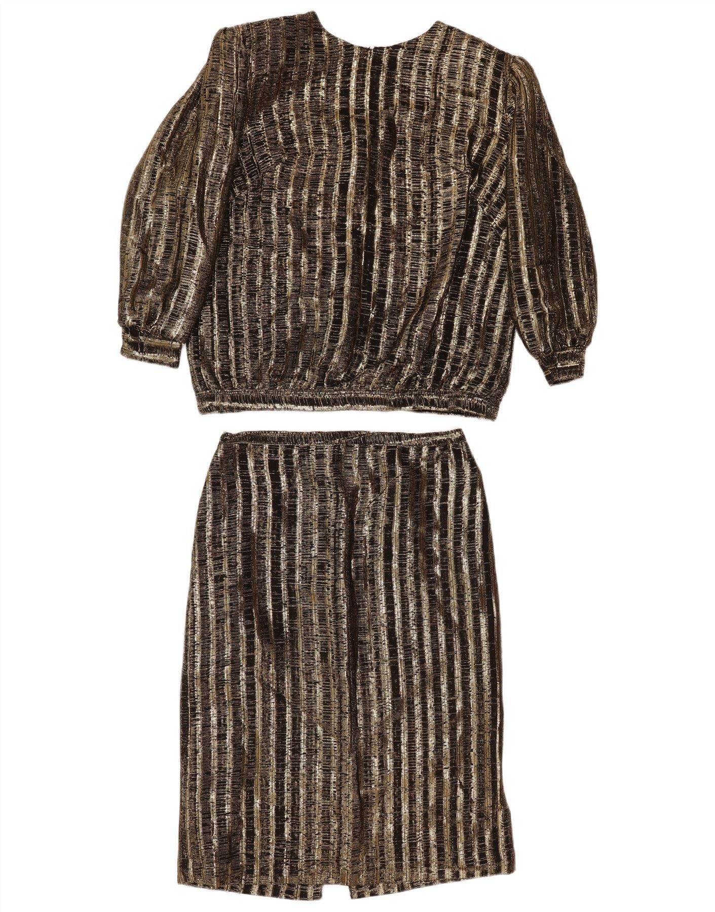 Vintage kvinders 2-delt nederdelsæt UK 14 Medium W29 Brun stribet