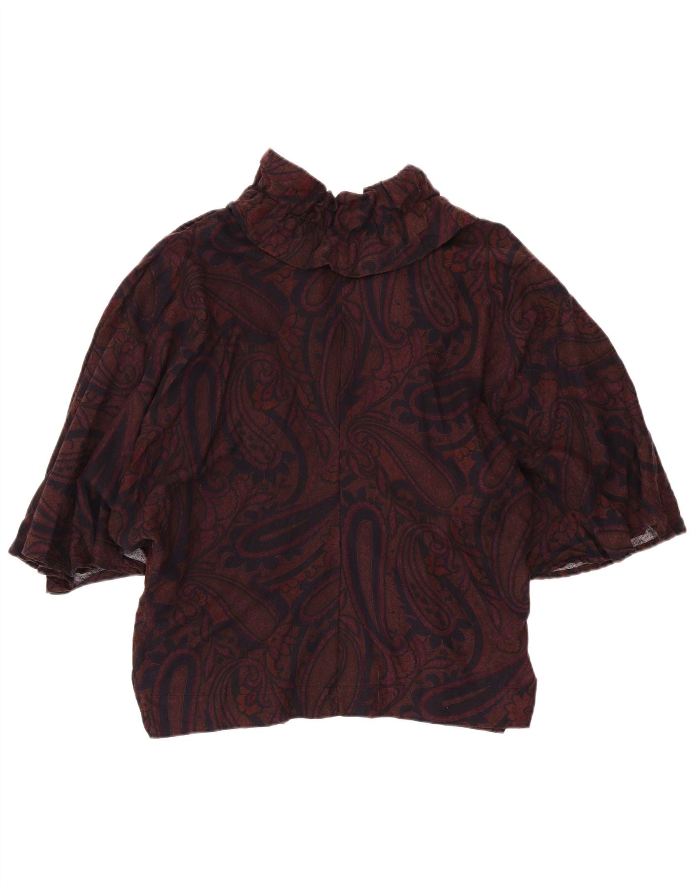 VINTAGE Dame 3/4-ærmet cardigantop UK 16 Large Burgundy Paisley