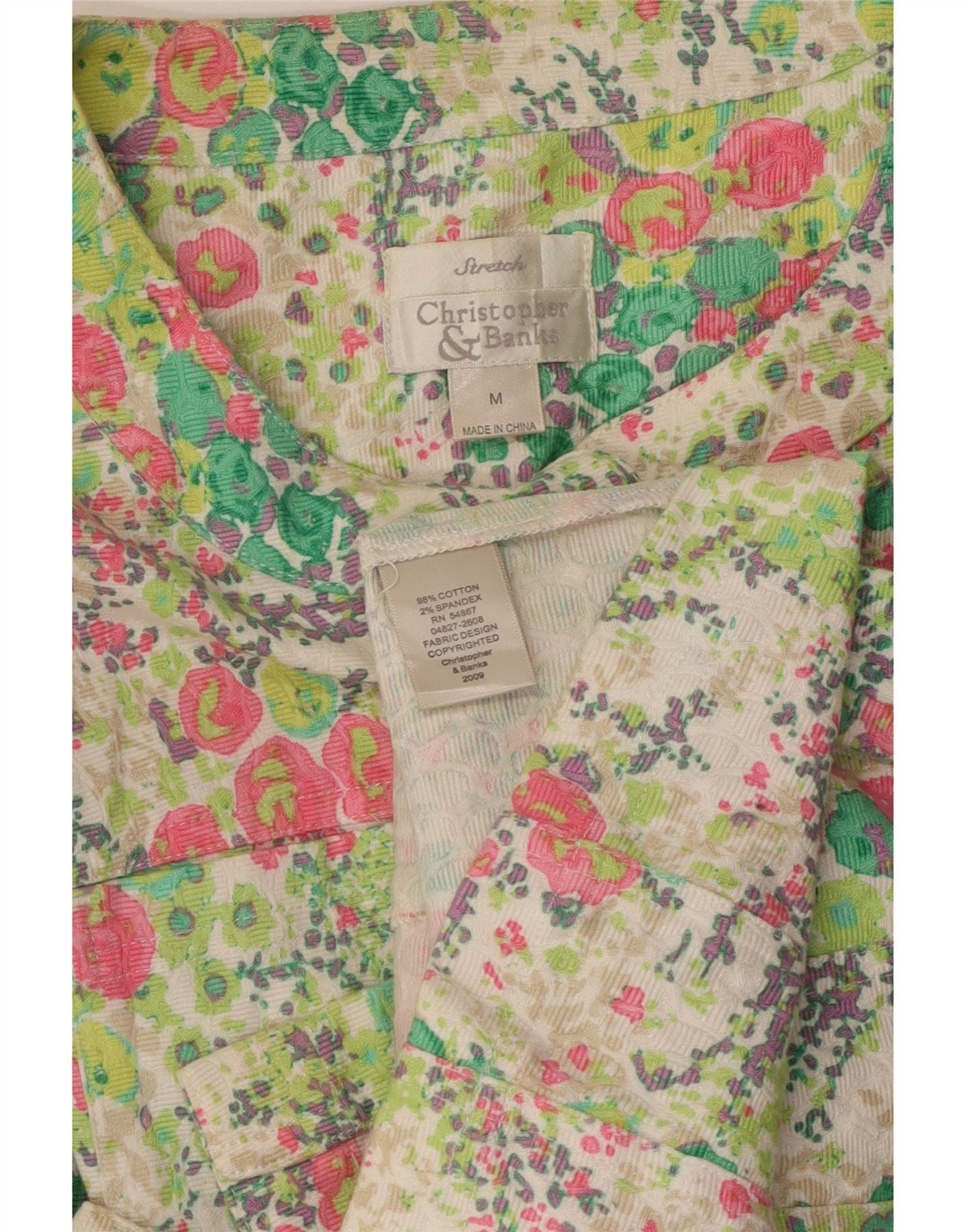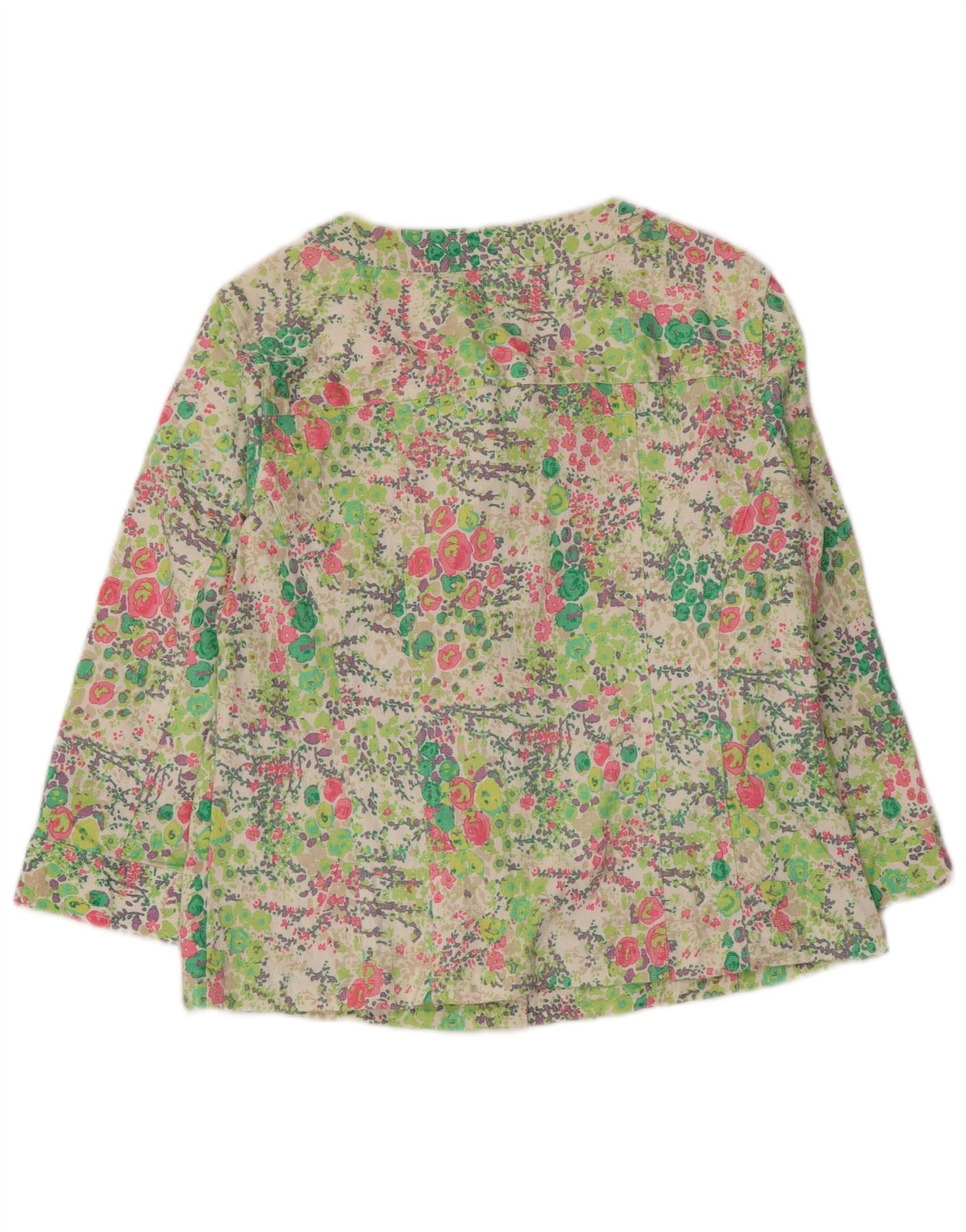 VINTAGE skjortebluse med 3/4 ærmer til kvinder UK 12 Medium Multicolored Floral