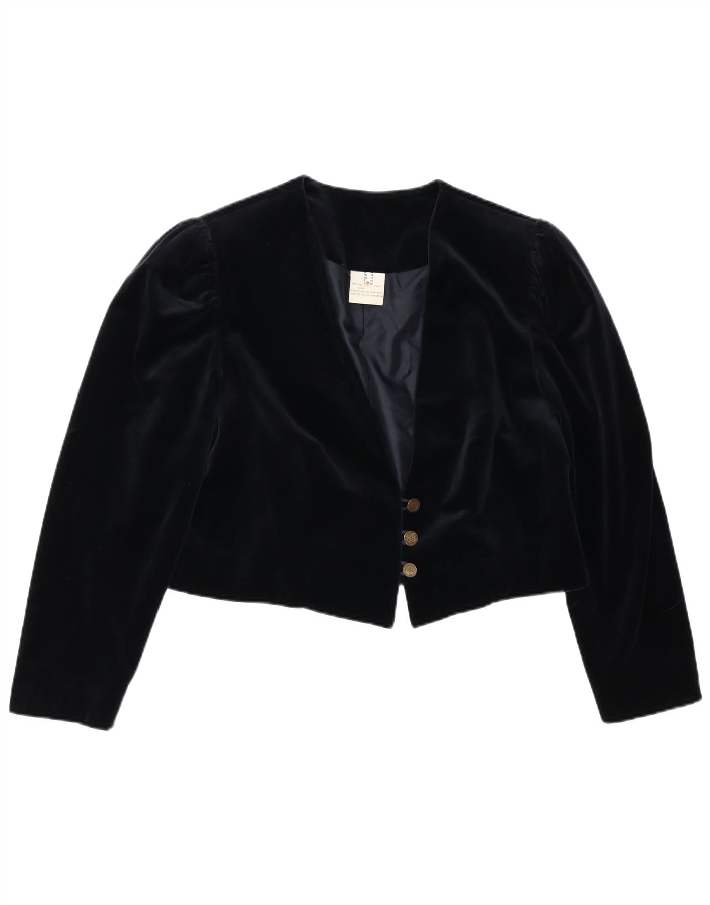 VINTAGE Dame 3 Button Velvet Blazer Jacket UK 18 XL Sort Bomuld