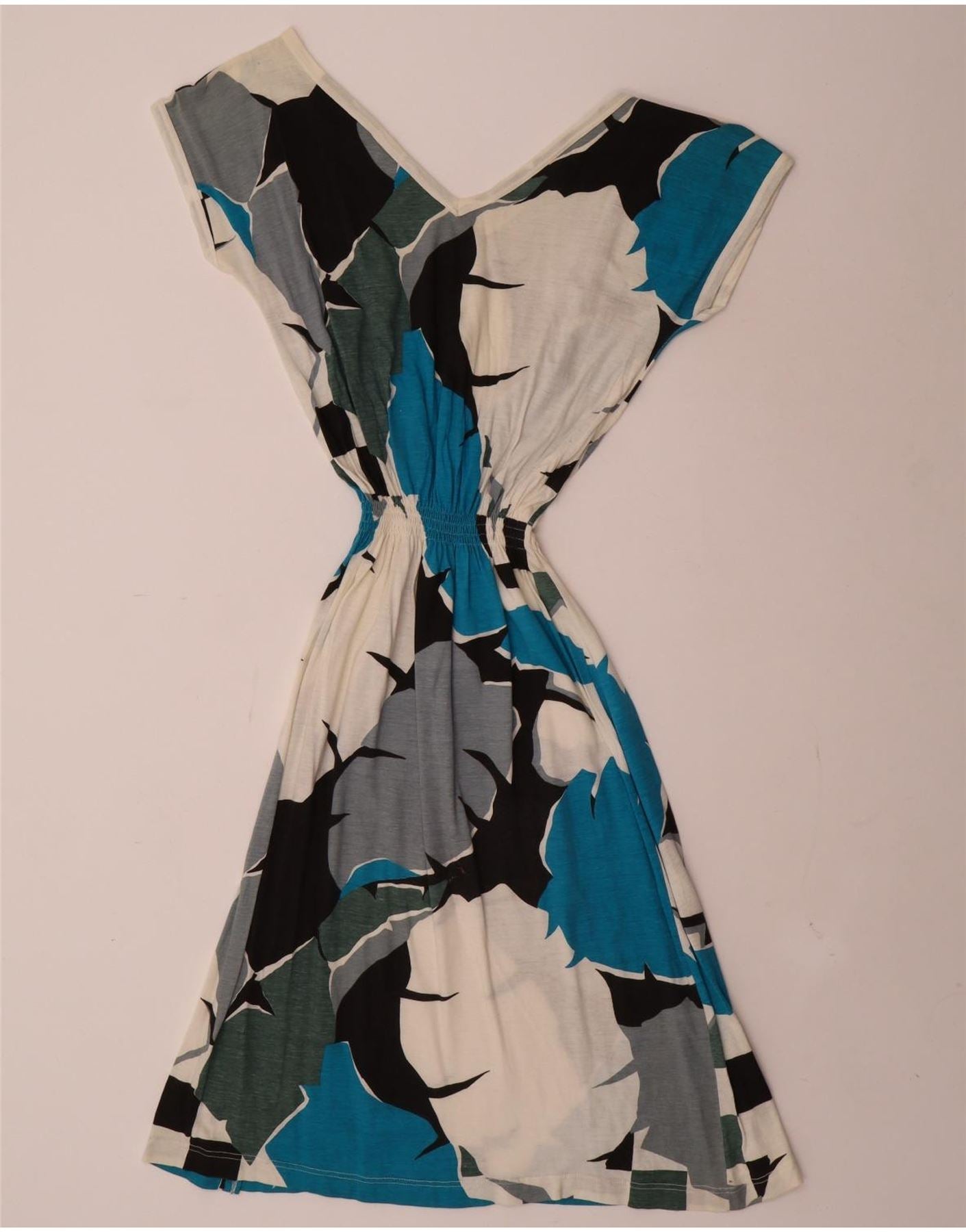 - AI beskrivelse: Denne vintage T-shirtkjole til kvinder er lavet af blødt jerseystof, der sikrer komfort. Den har et slående abstrakt mønster i hvid, blå, sort og grå. V-udskæring og korte ærmer giver en klassisk silhuet. En elastisk talje spænder blidt sammen og skaber en flatterende form. Denne pulloverkjole kombinerer en normal pasform med en afslappet, stilfuld æstetik, perfekt til hverdagsbrug.
