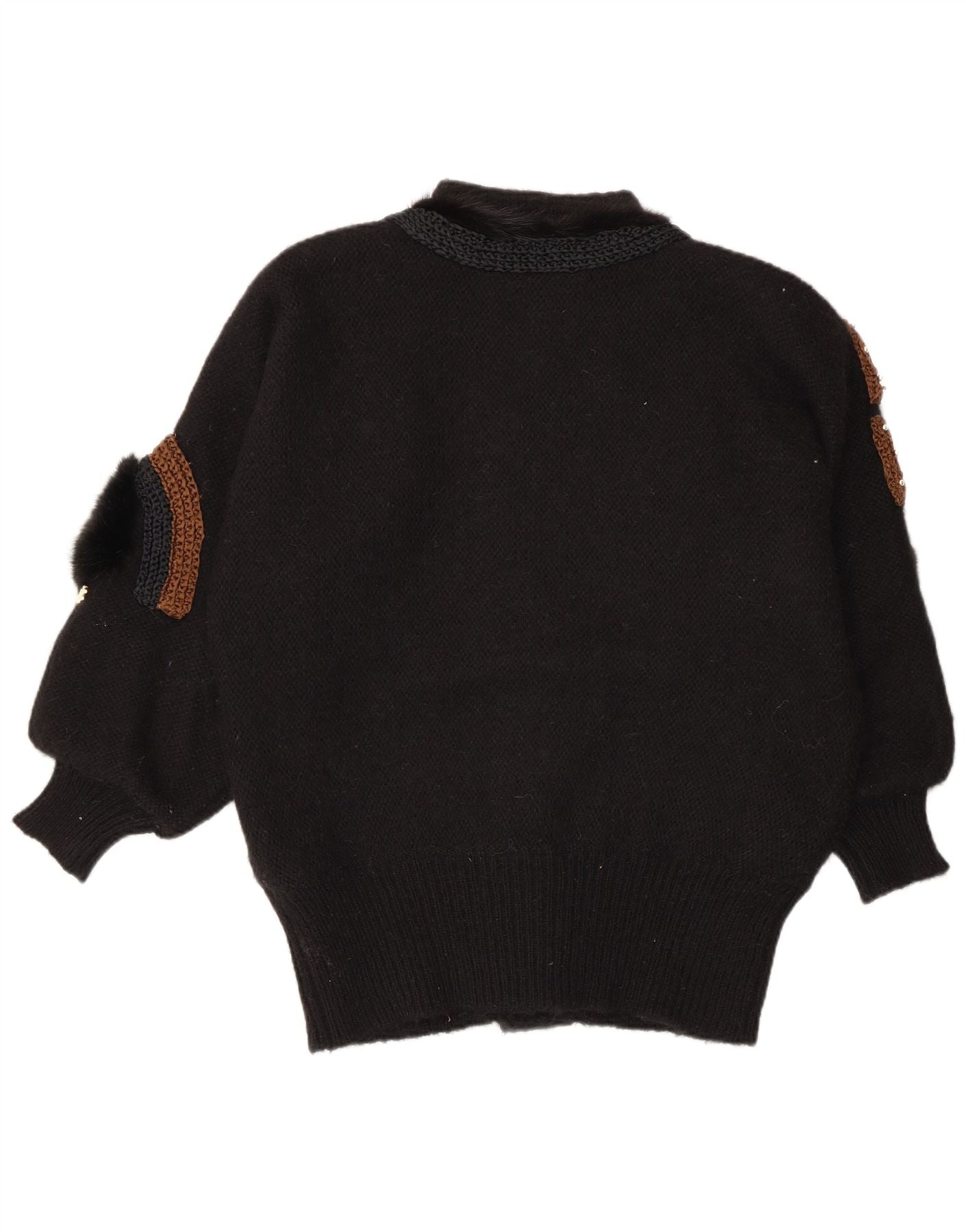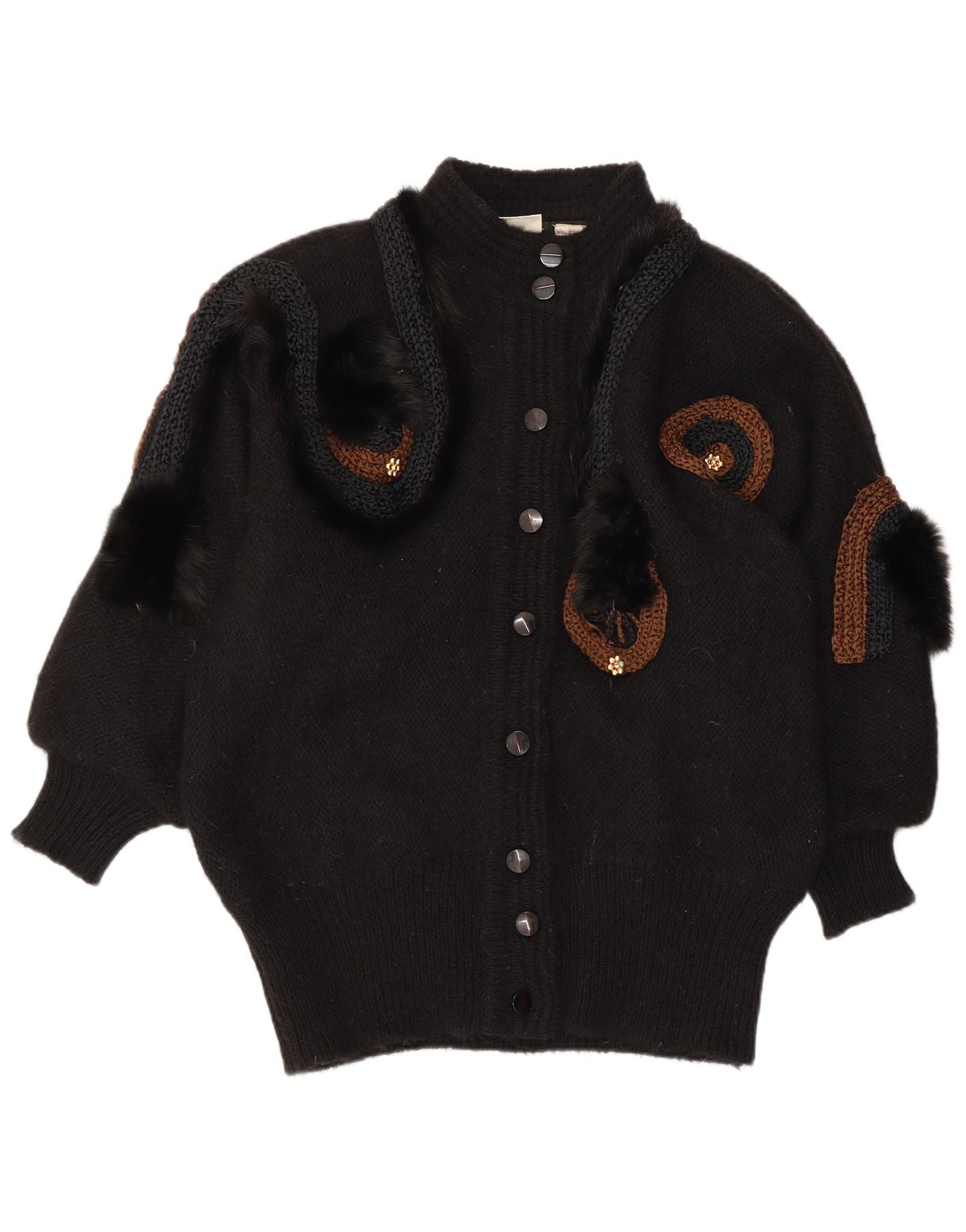 VINTAGE kvinders abstrakt mønster cardigan sweater EU 42/44 Large Black