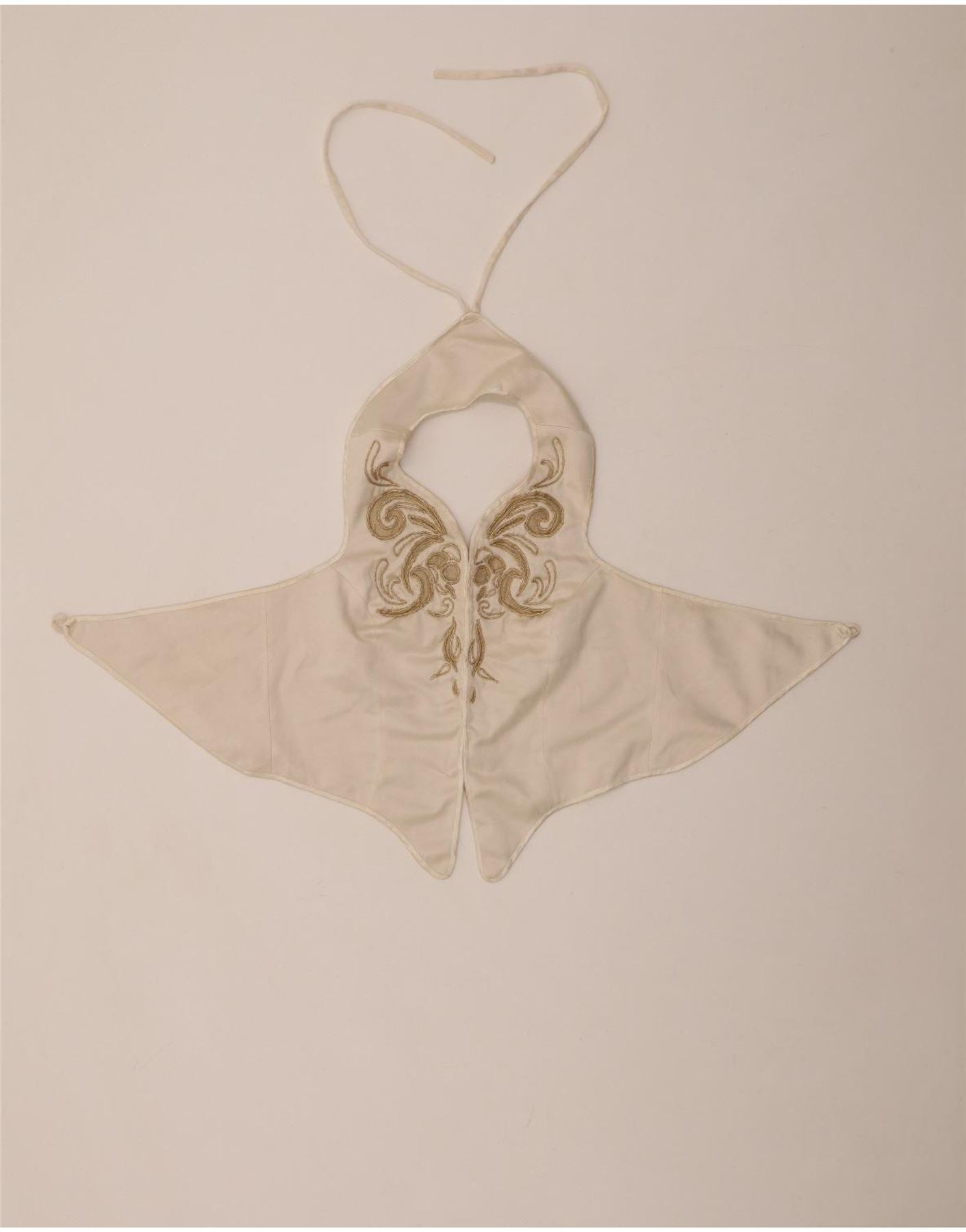 VINTAGE Kvinders abstrakt mønster Crop Halter Top UK 12 Medium White