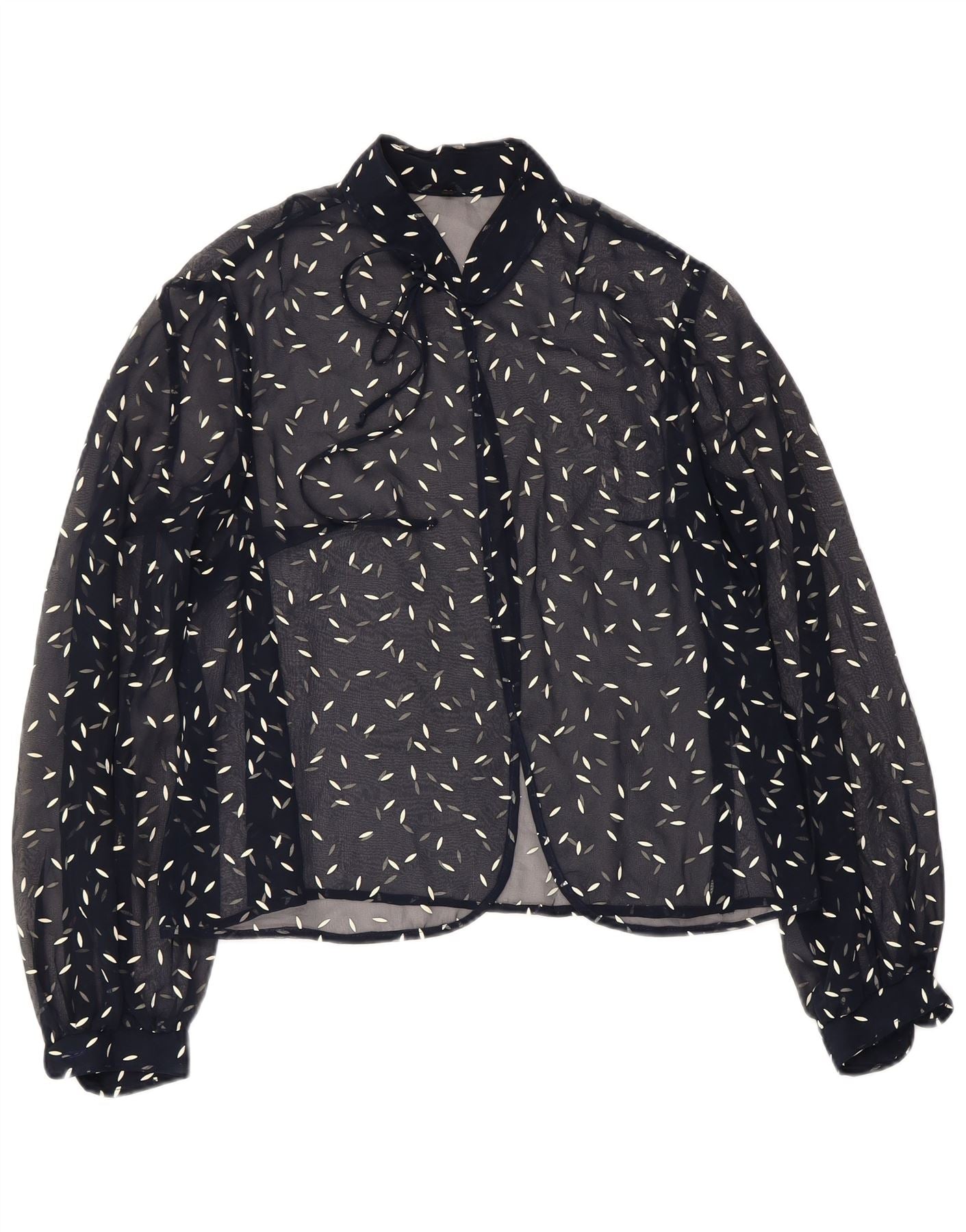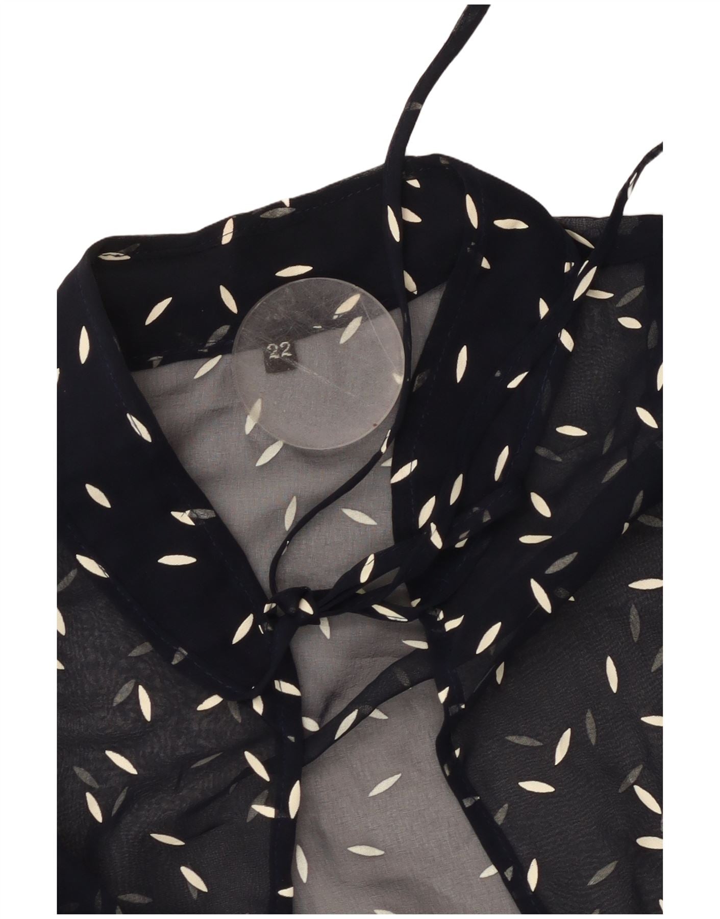 VINTAGE kvinders abstrakt mønster skjortebluse UK 22 3XL Navy Blue