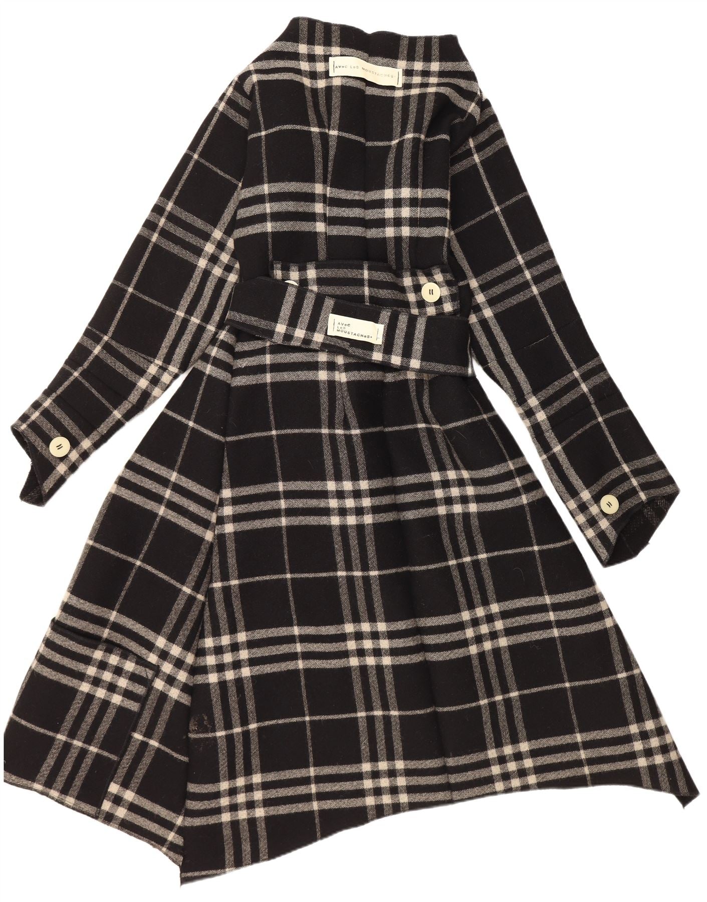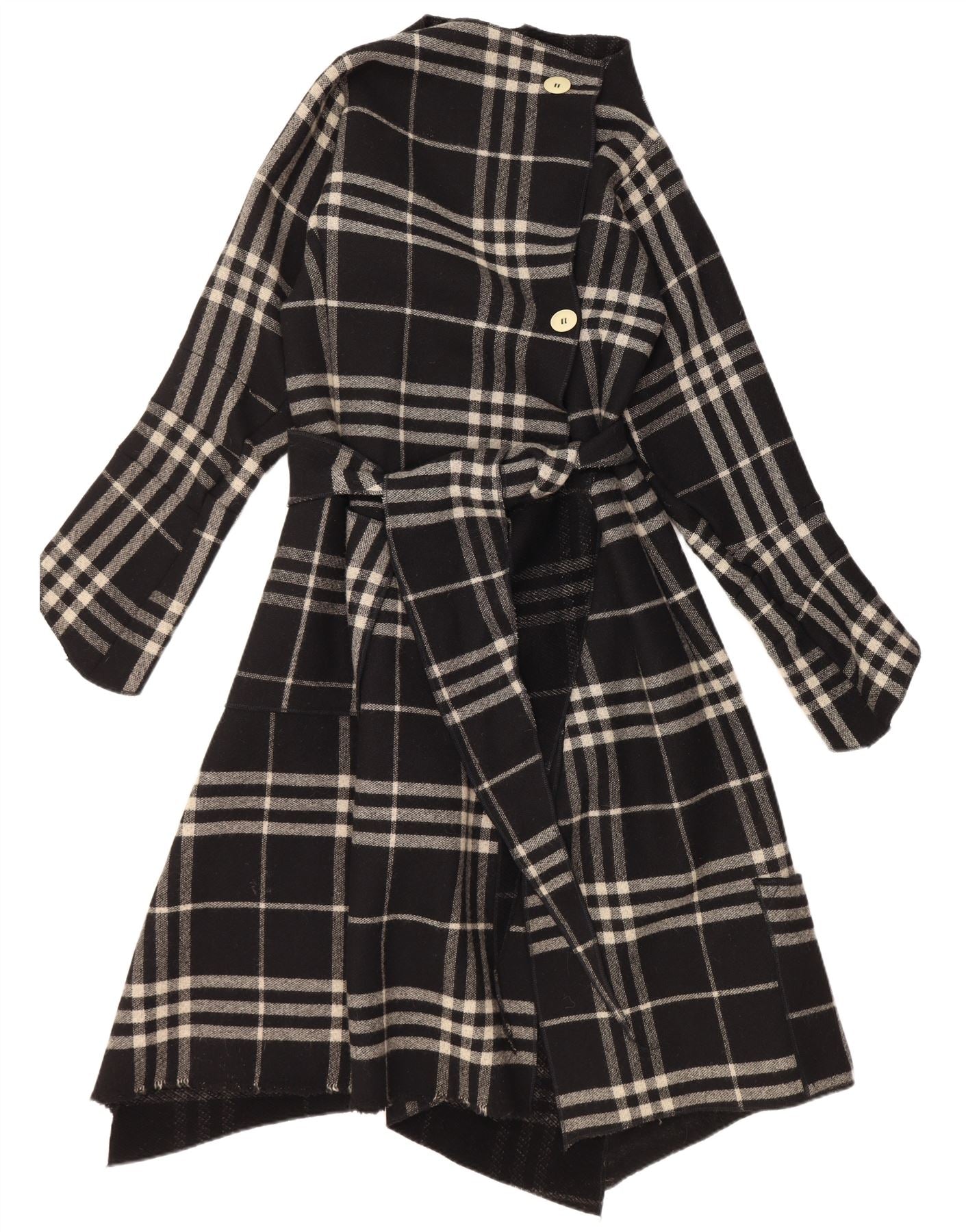VINTAGE Womens Asymmetric Overcoat UK 14 Medium Black Check