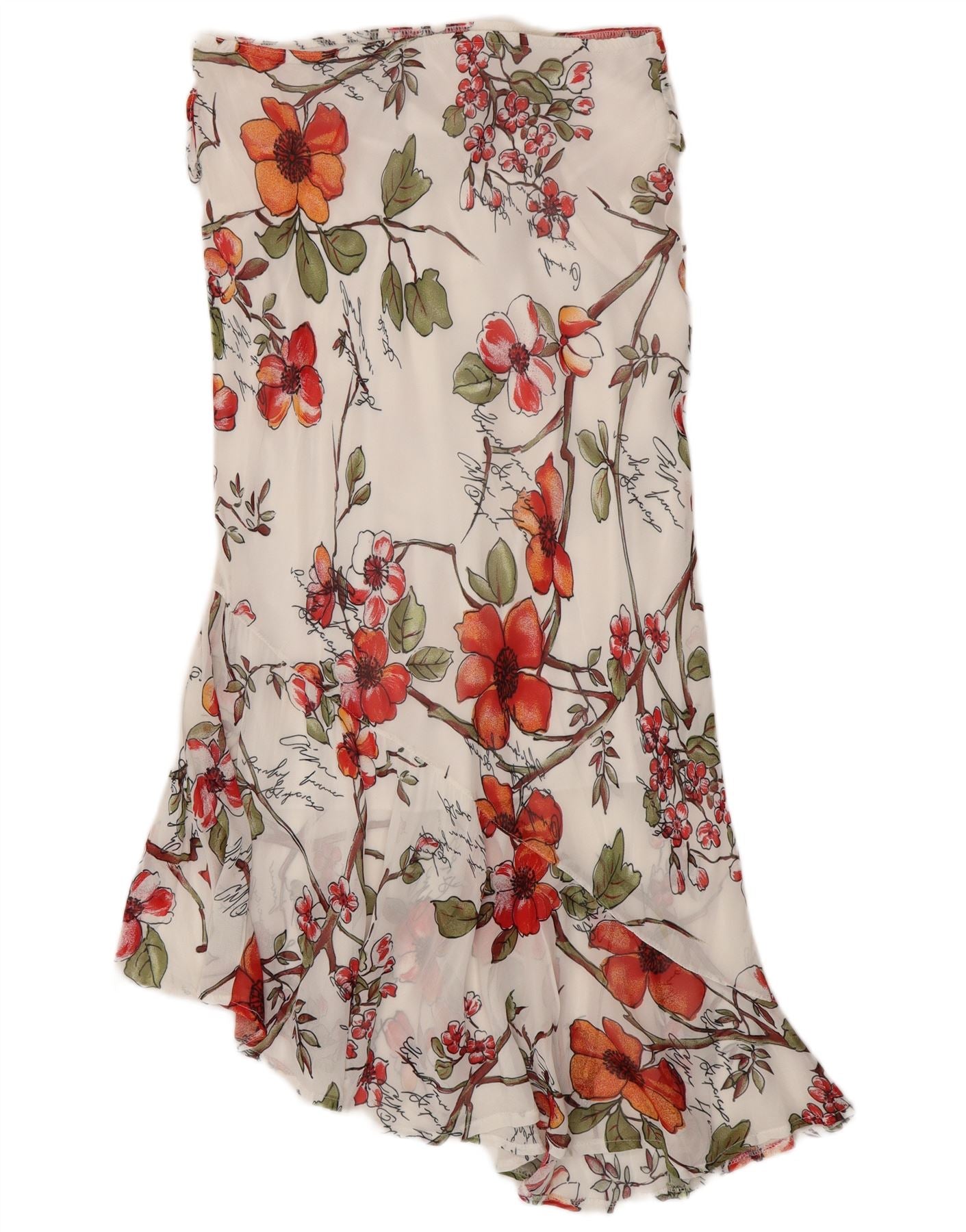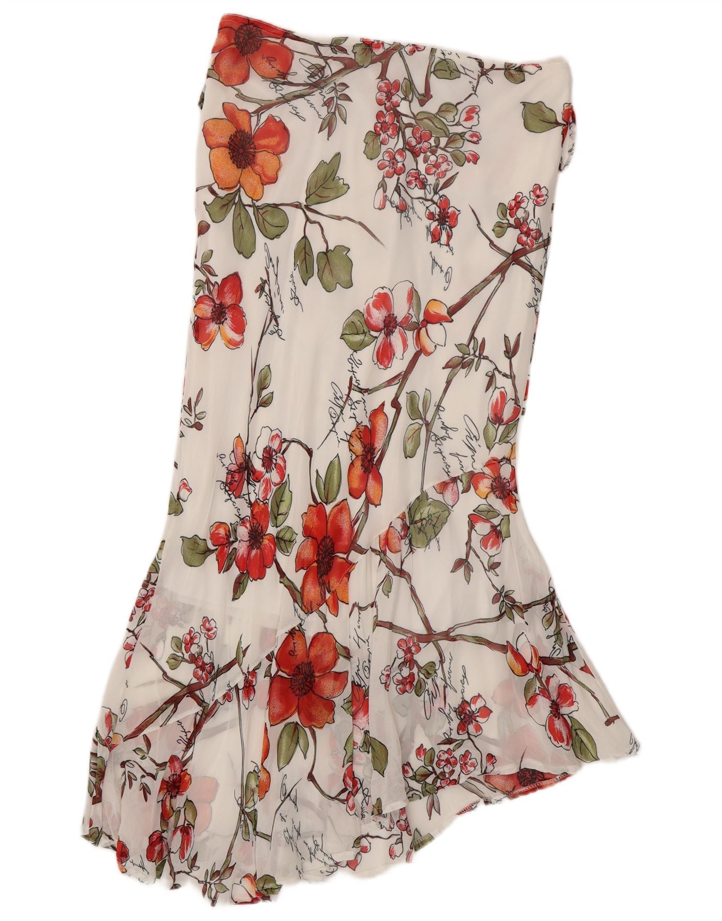 Vintage kvinders asymmetrisk nederdel W32 stor hvid blomsterviscose