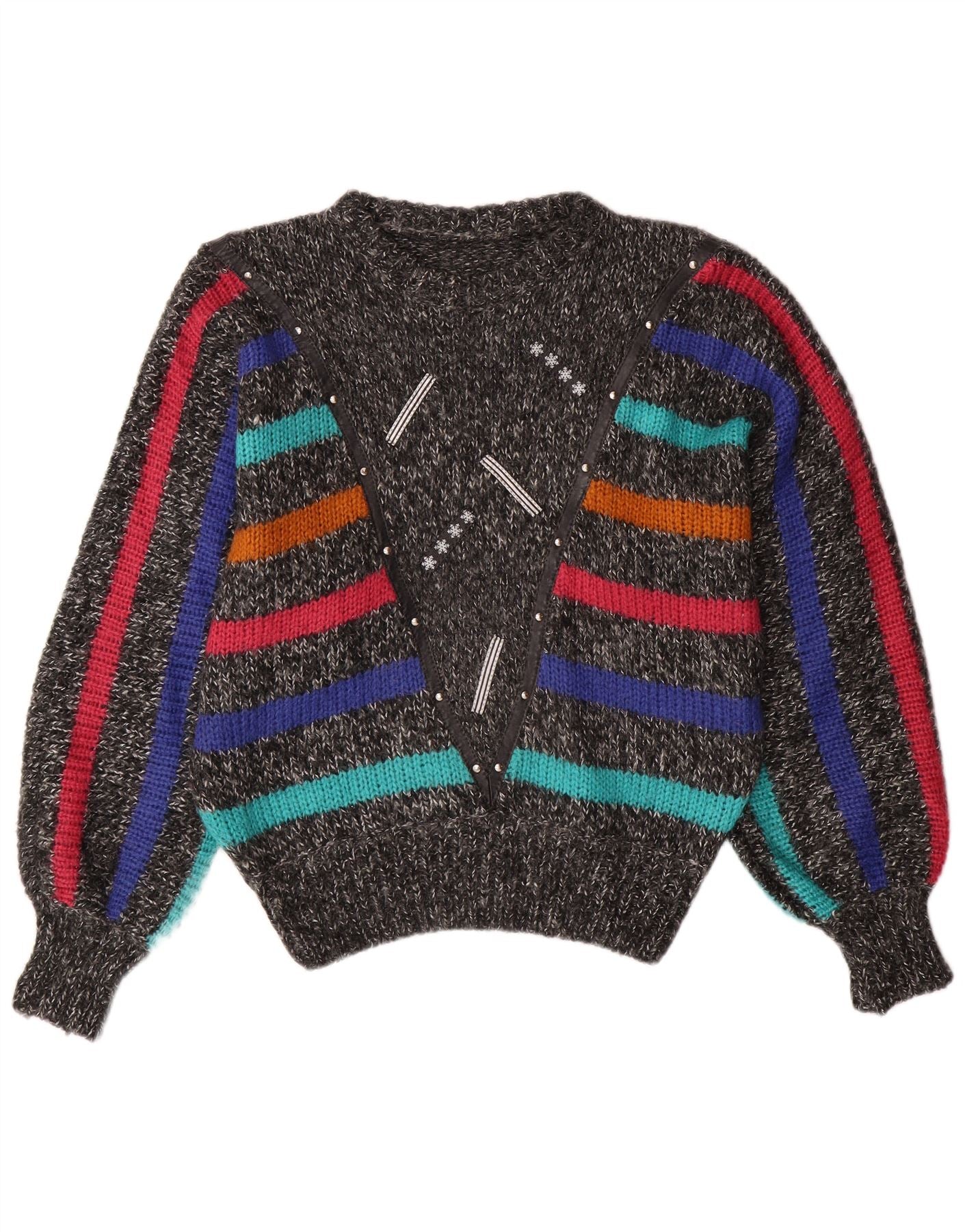 VINTAGE Dame Batwing Jumper Sweater UK 14 Medium Grå Stribet