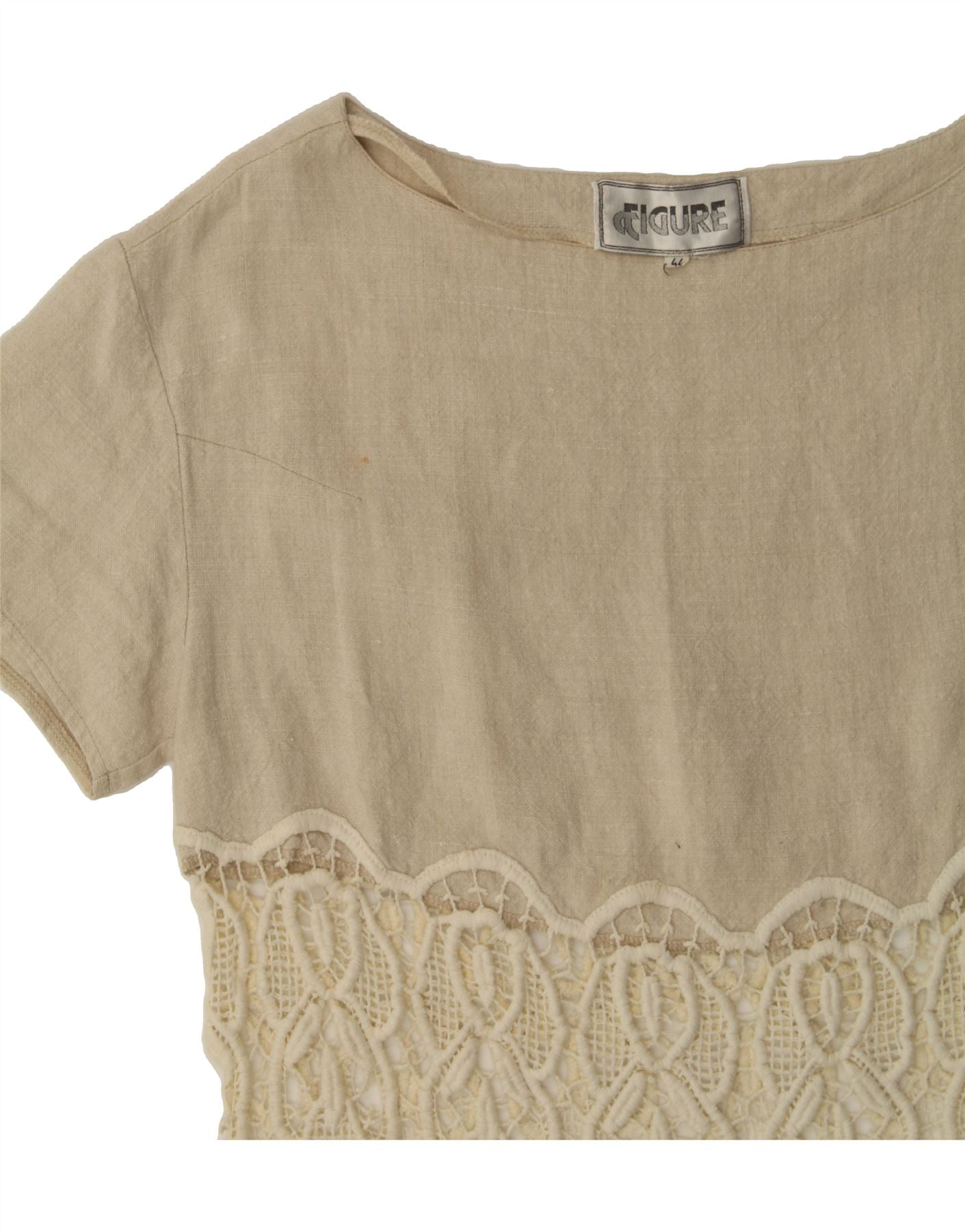 VINTAGE Womens Blouse Top IT 44 Medium Beige Linen
