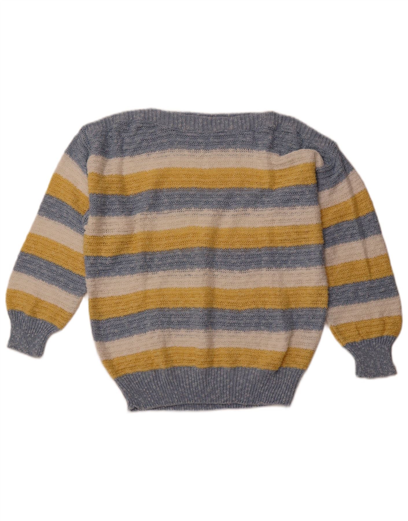 VINTAGE Dame Boat Neck Sweater IT 42 Mellem blå stribet bomuld