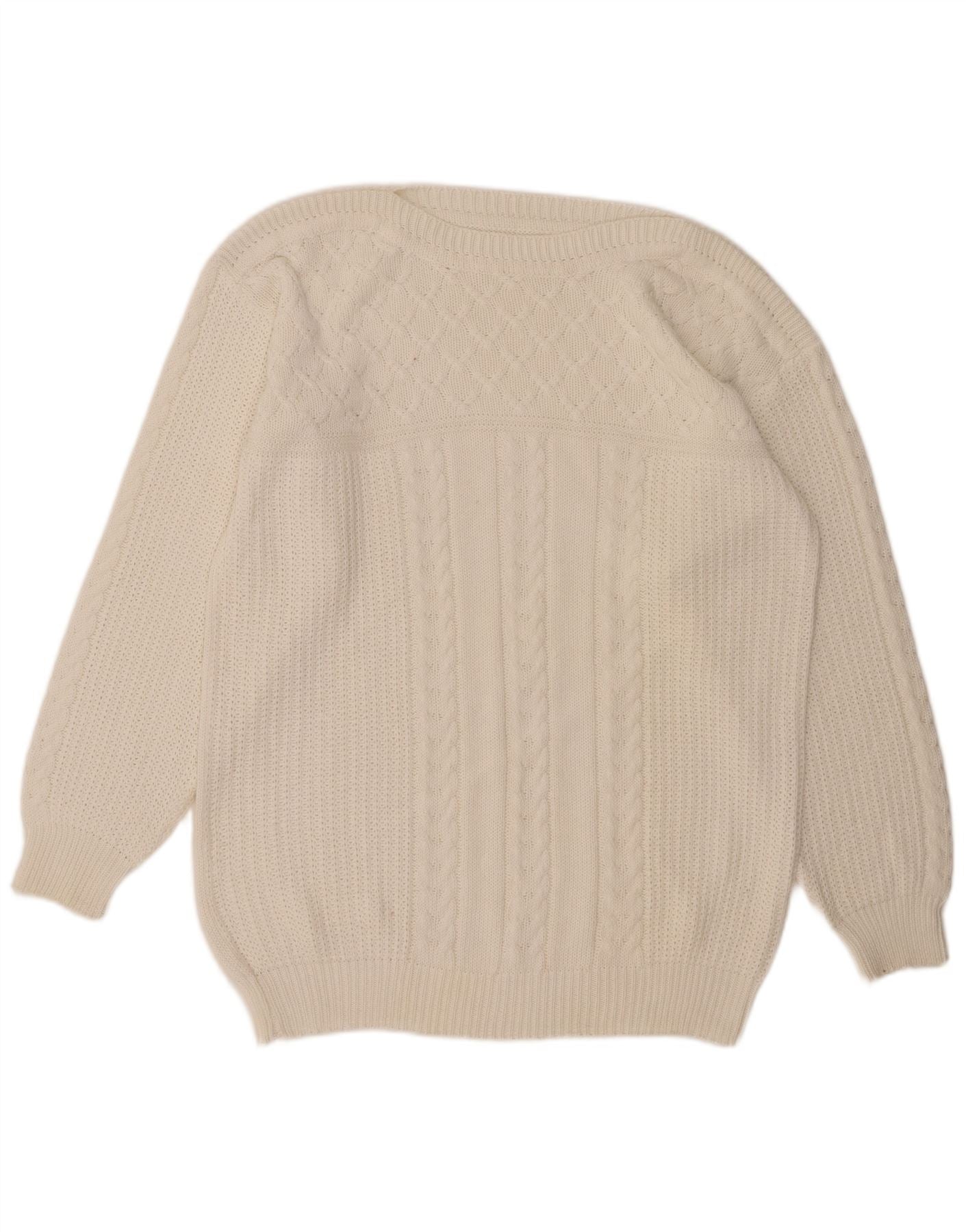 VINTAGE Dame Boat Neck Jumper Sweater UK 14 Large White