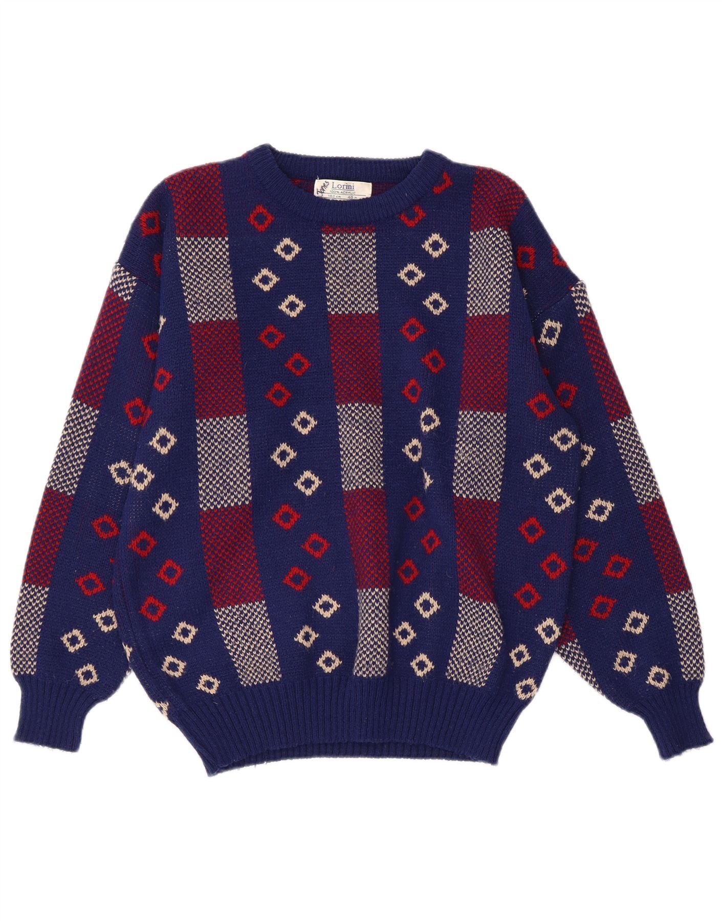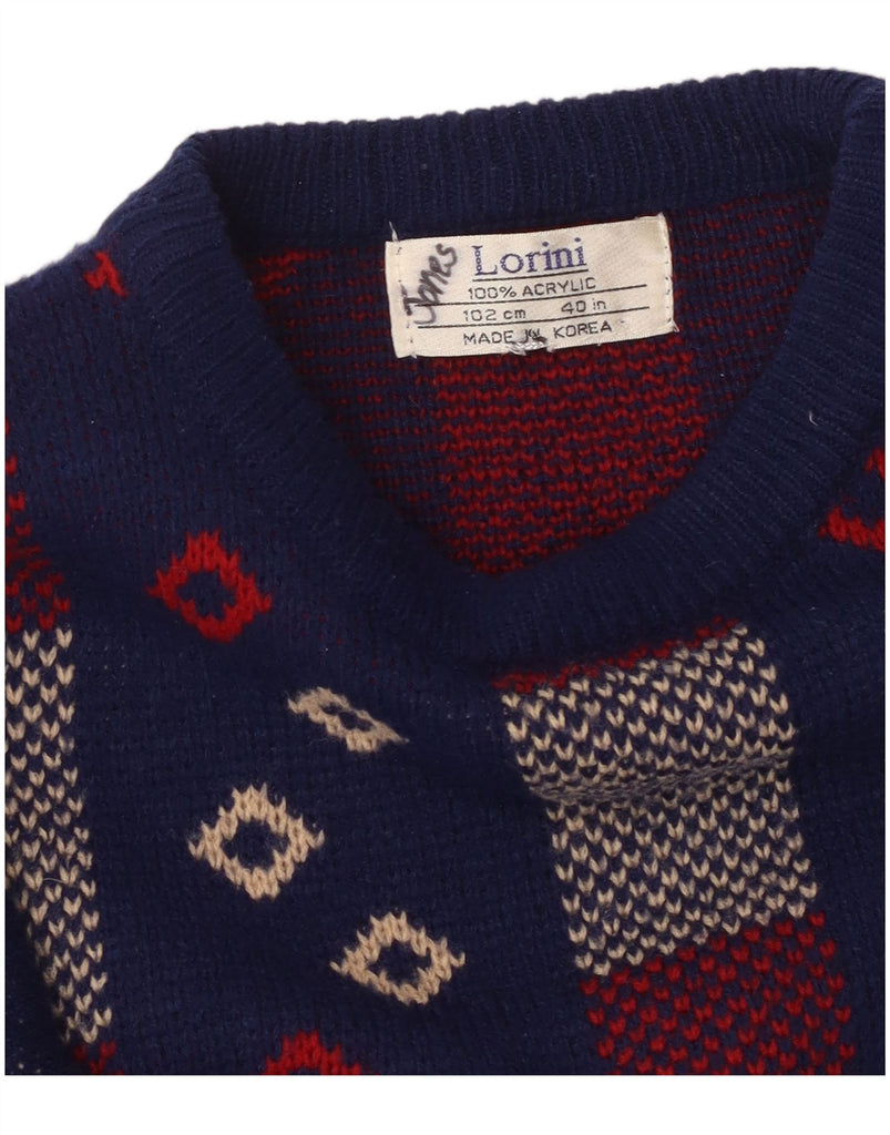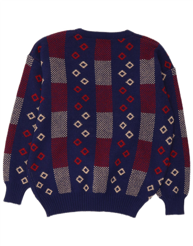 VINTAGE Dame Boat Neck Jumper Sweater UK 14 Medium Navy Blue Geometric