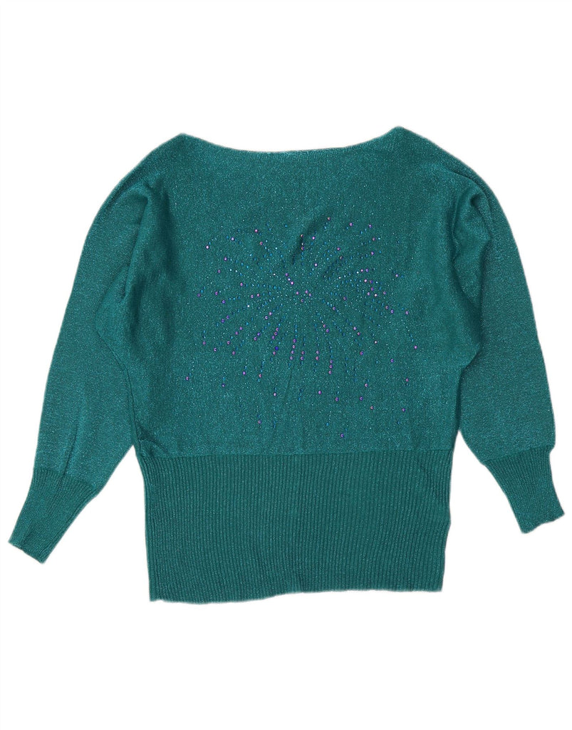 VINTAGE Dame Boat Neck Jumper Sweater UK 16 Large Green Flecked Wool