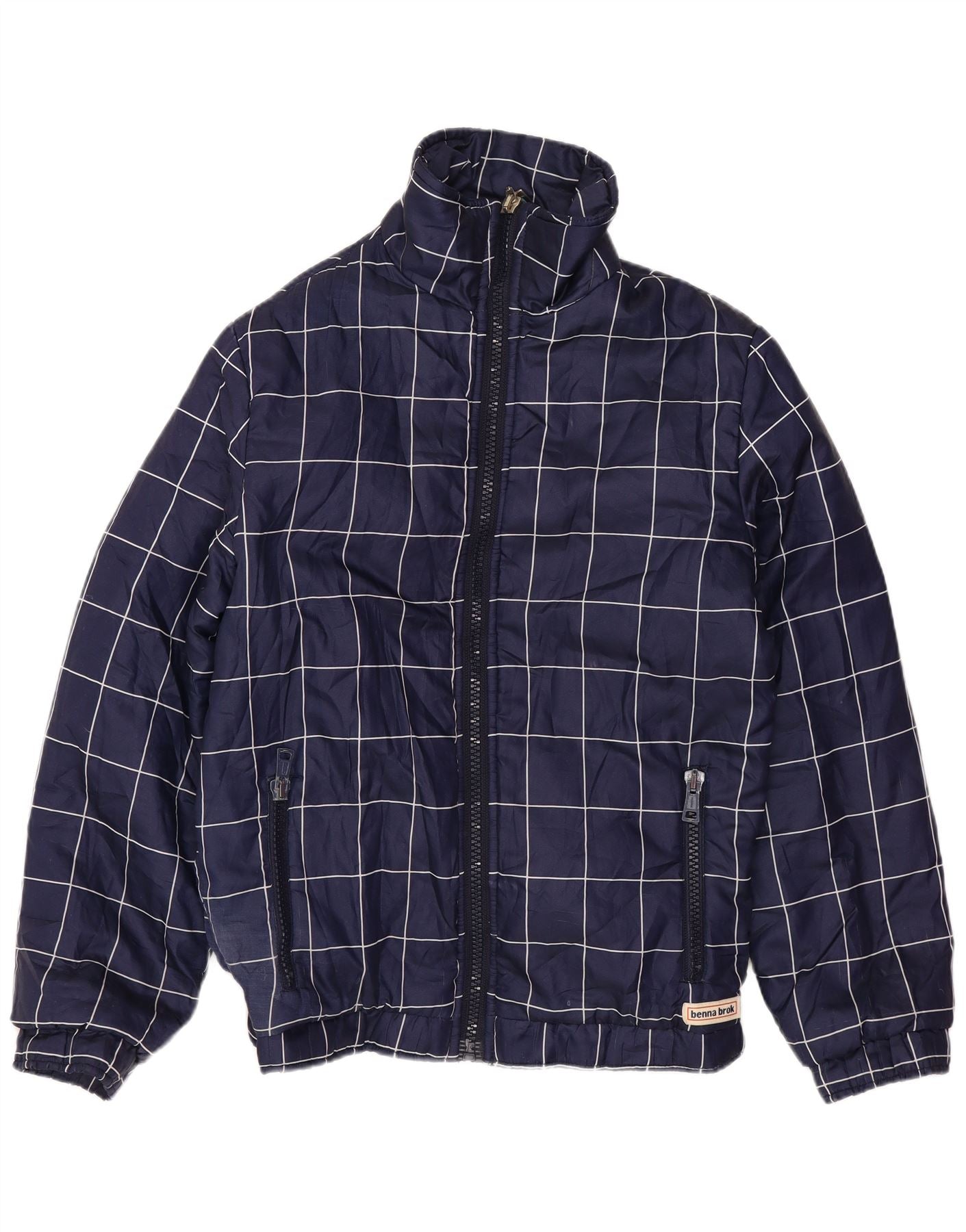 VINTAGE Womens Bomber Jacket UK 14 Large Navy Blue Check