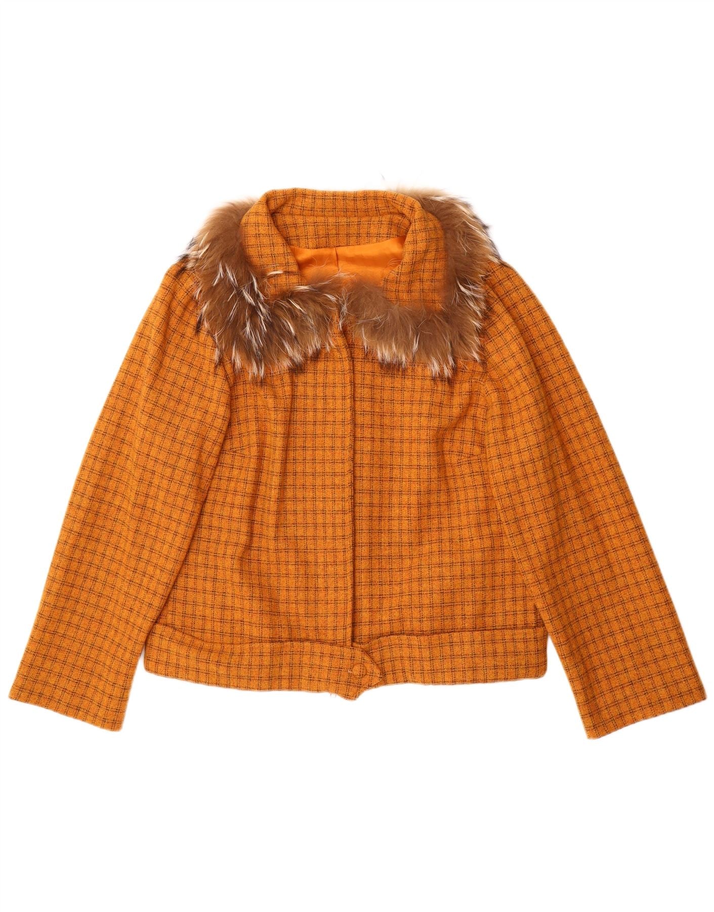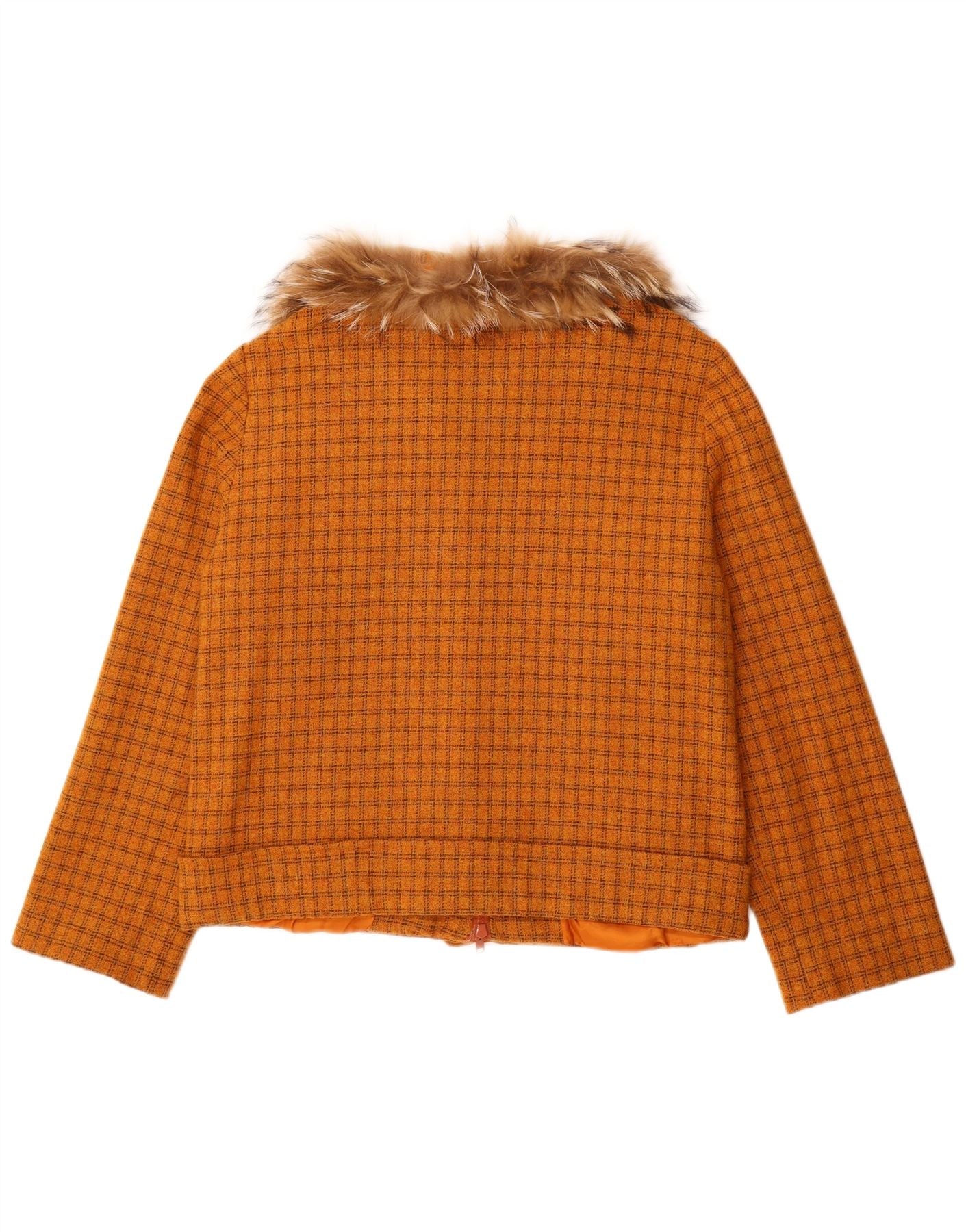 VINTAGE Womens Bomber Jacket UK 16 Large Orange Check