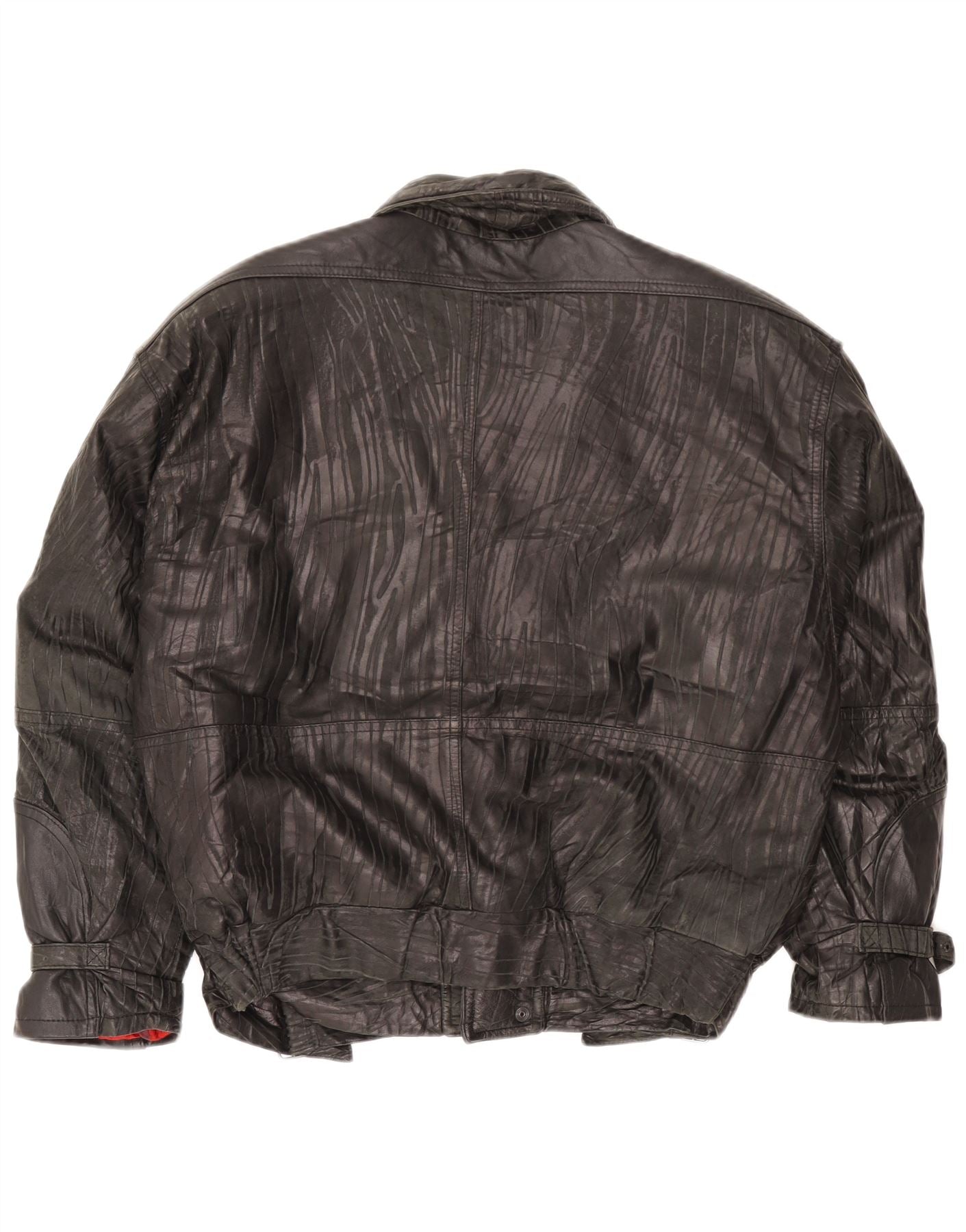 Vintage Dame Bomber Læderjakke IT 54 3XL Sort Stribet