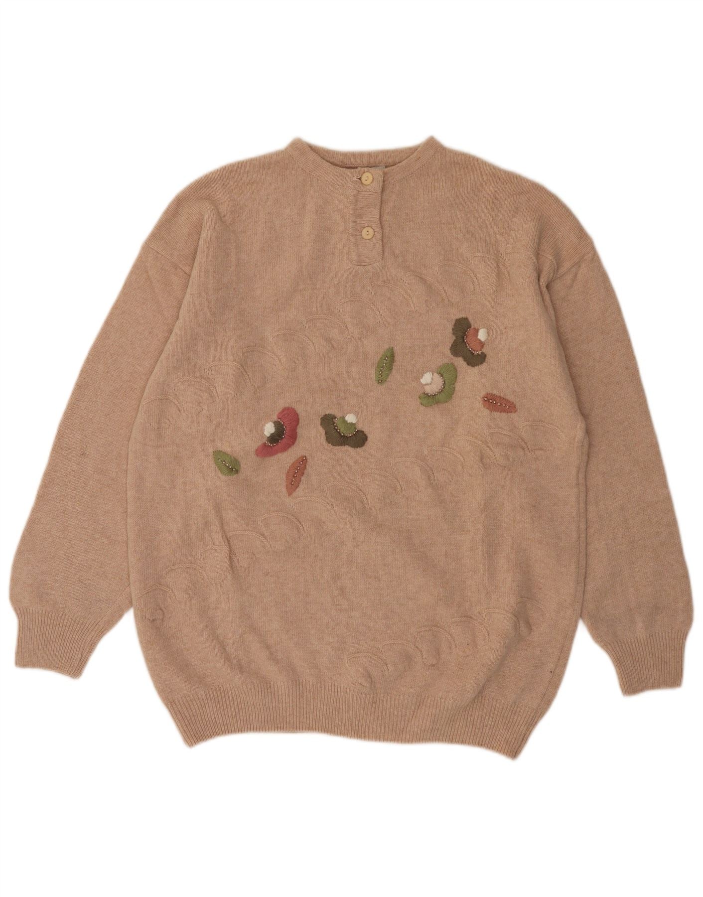 VINTAGE Womens Button Neck Jumper Sweater UK 14 Medium Beige Floral