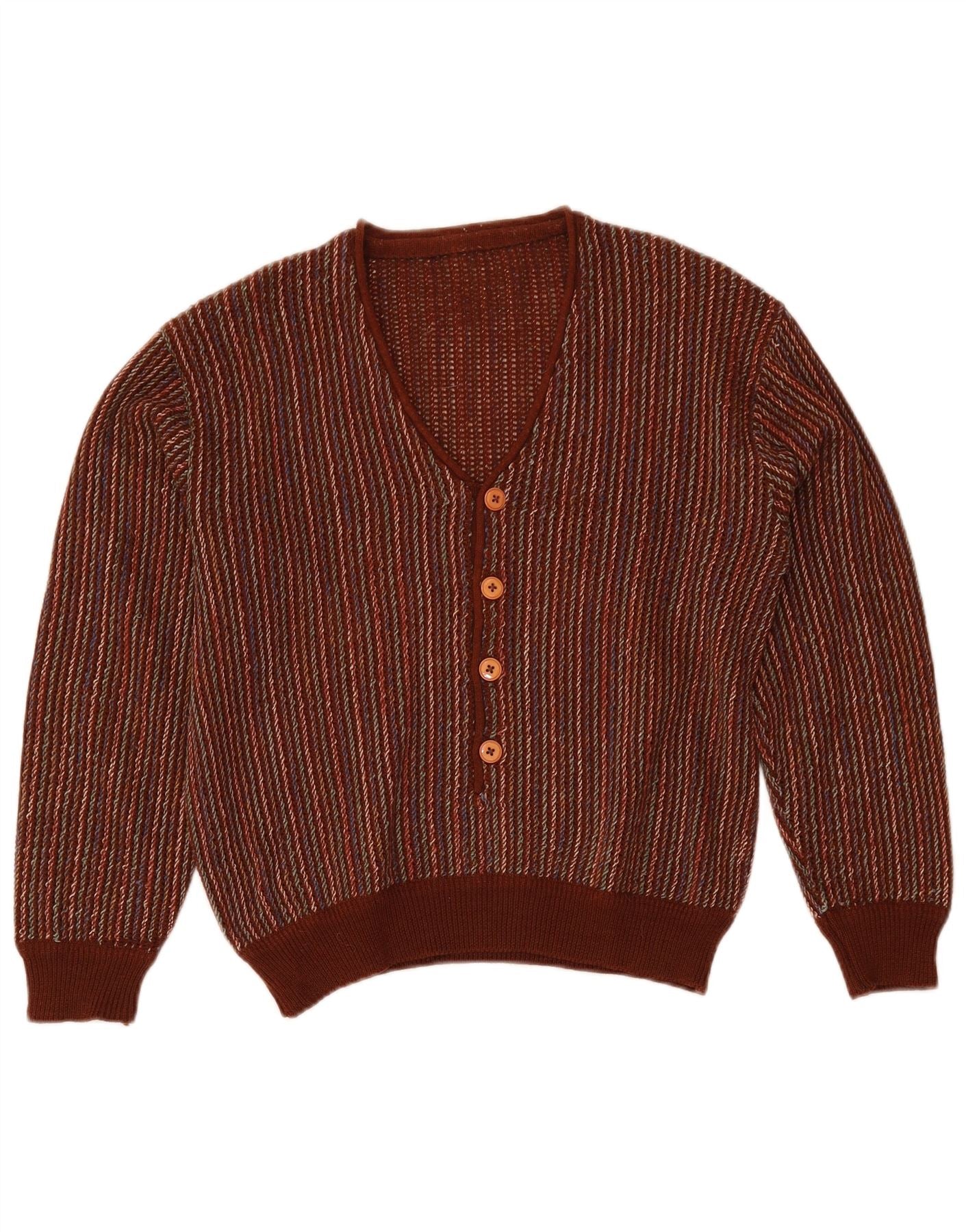 Vintage dame cardigan sweater UK 12 medium brun stribet