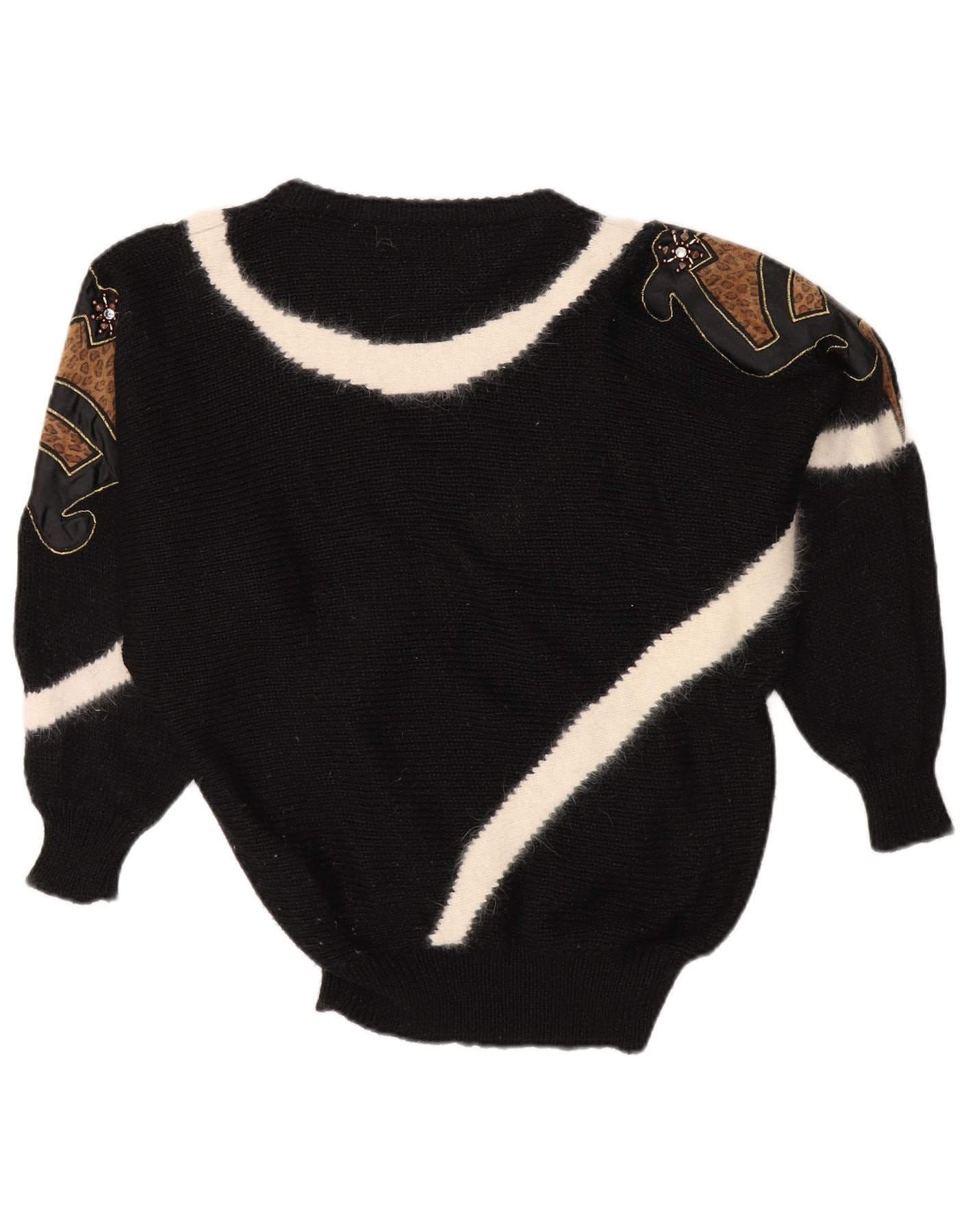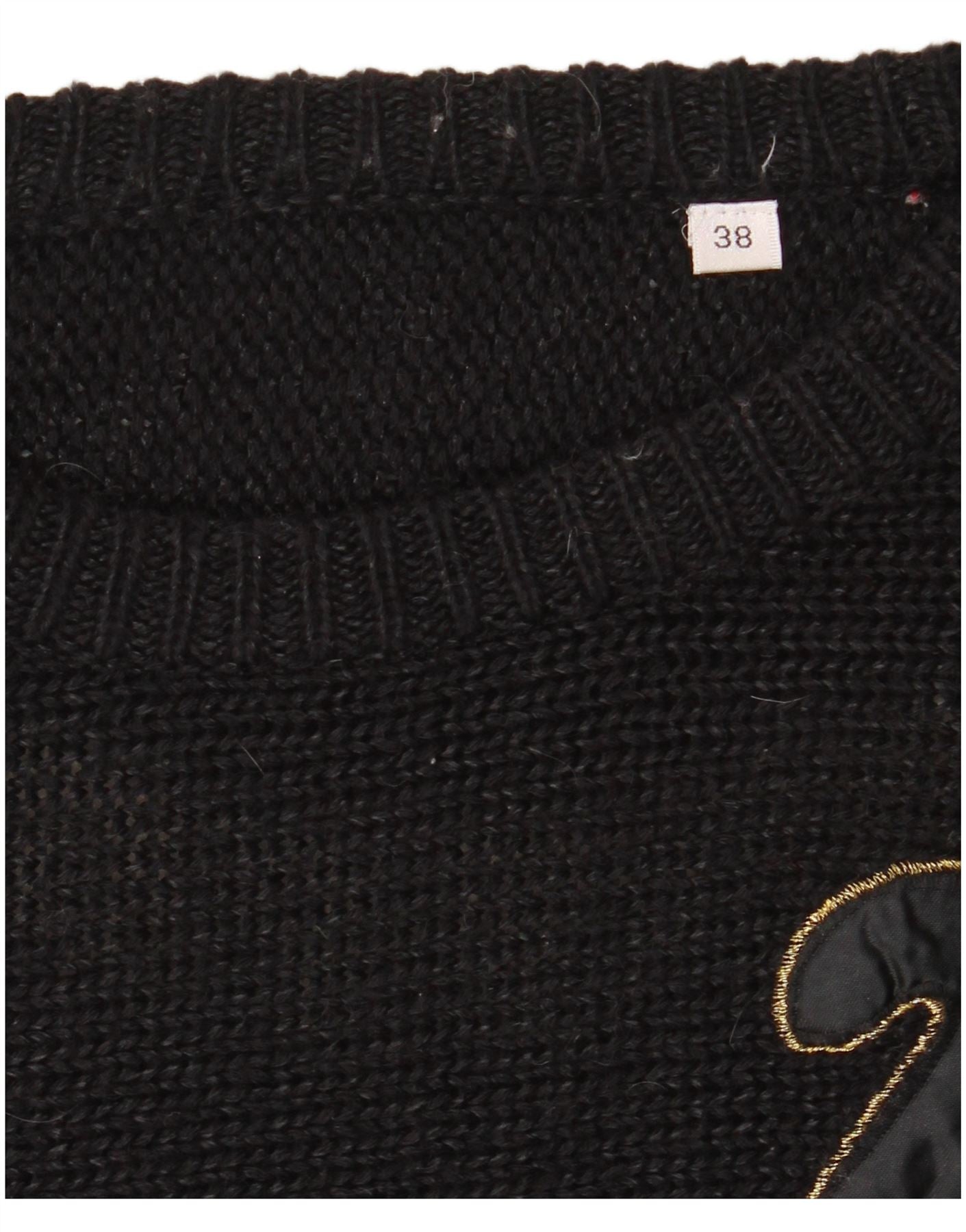 VINTAGE Dame sweater med rund hals EU 38 Medium Black Colourblock