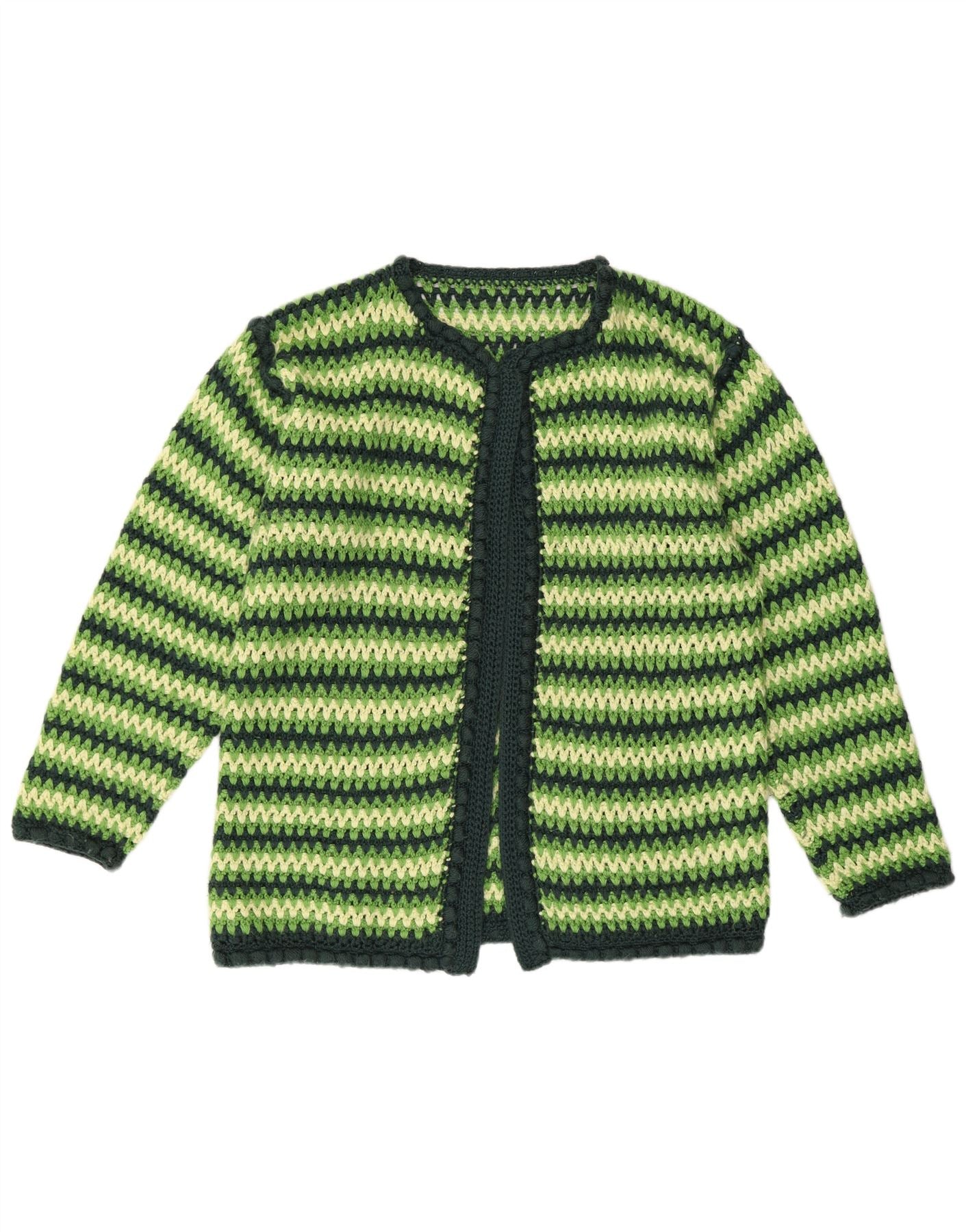 VINTAGE hæklet cardigan sweater til kvinder UK 16 Stor grøn stribet