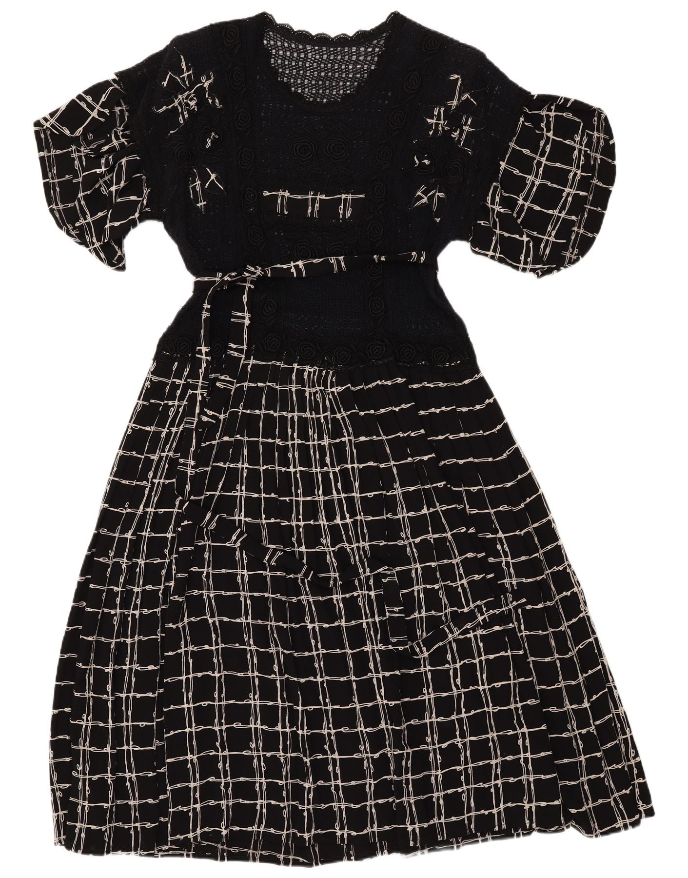 VINTAGE hæklet maxikjole til kvinder UK 12 Medium Black Check