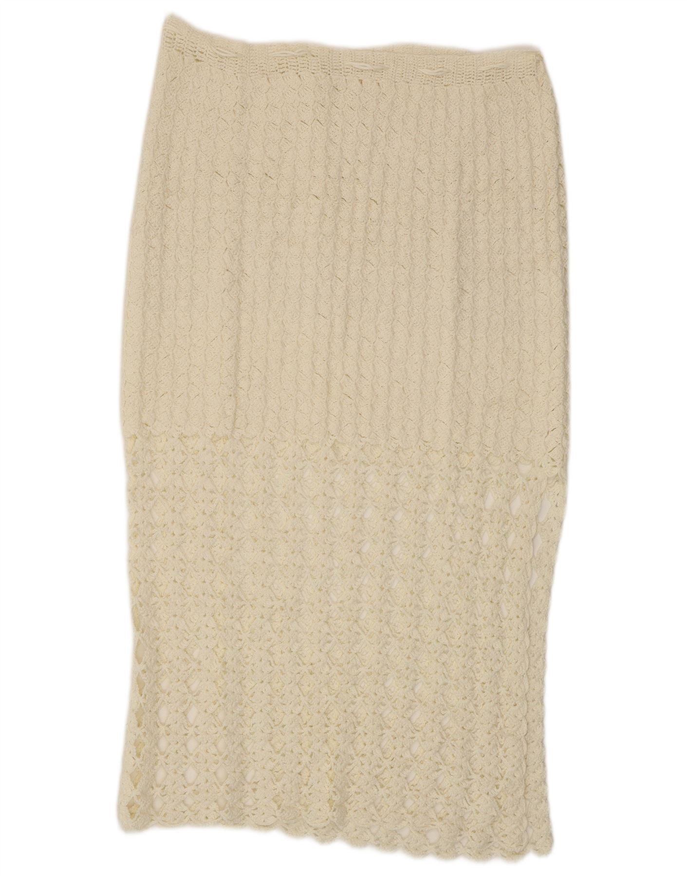 VINTAGE hæklet midi-nederdel til kvinder W32 Large White