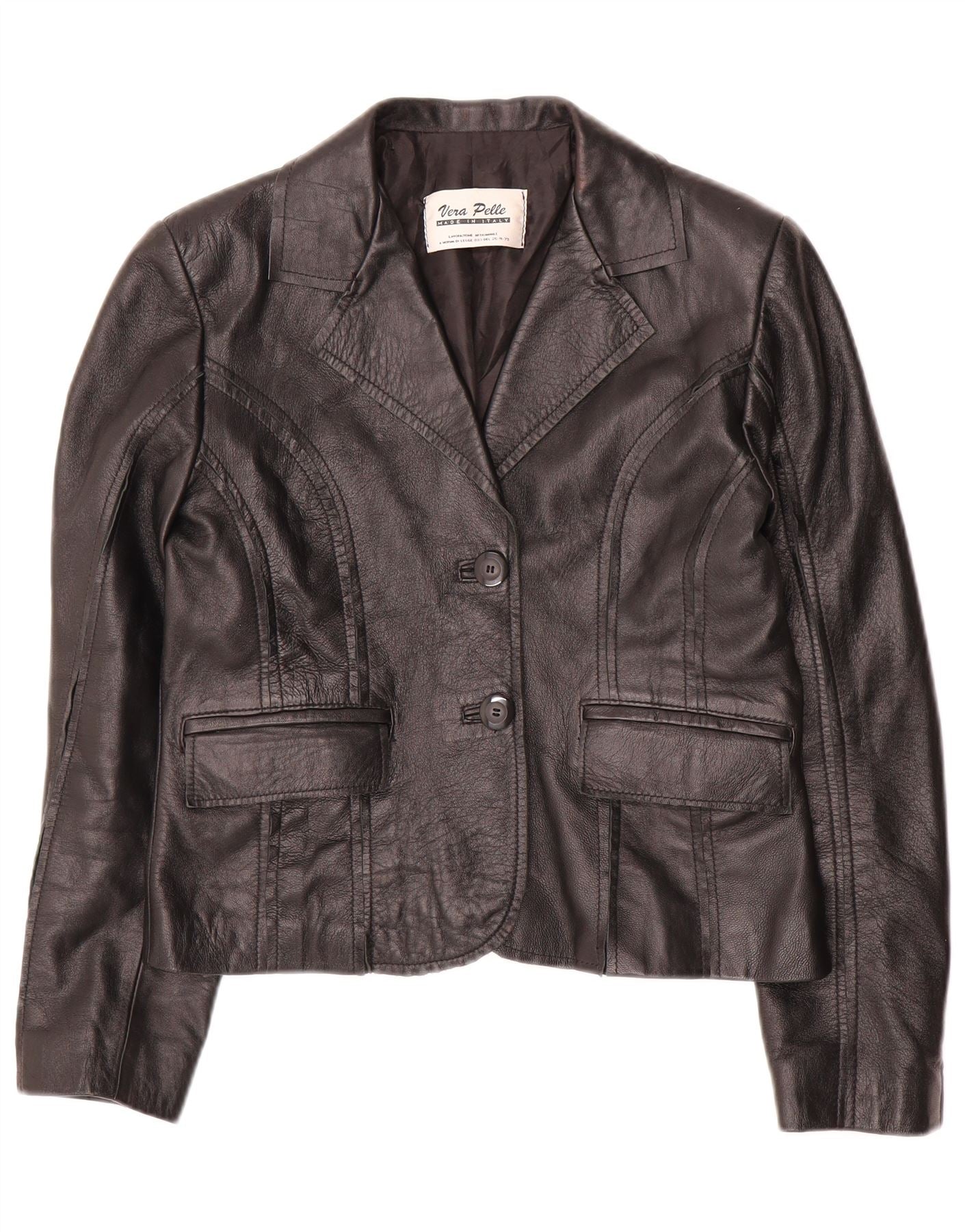 VINTAGE Dame Crop 2-knaps blazerjakke IT 42 Medium sort læder
