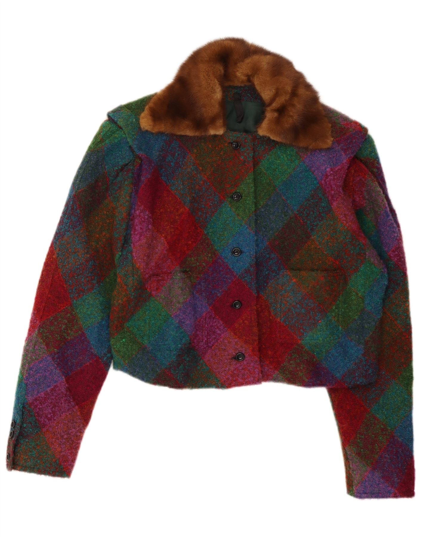 VINTAGE Womens Crop Blazer Jacket UK 14 Large Multicolor Argyle/Diamond