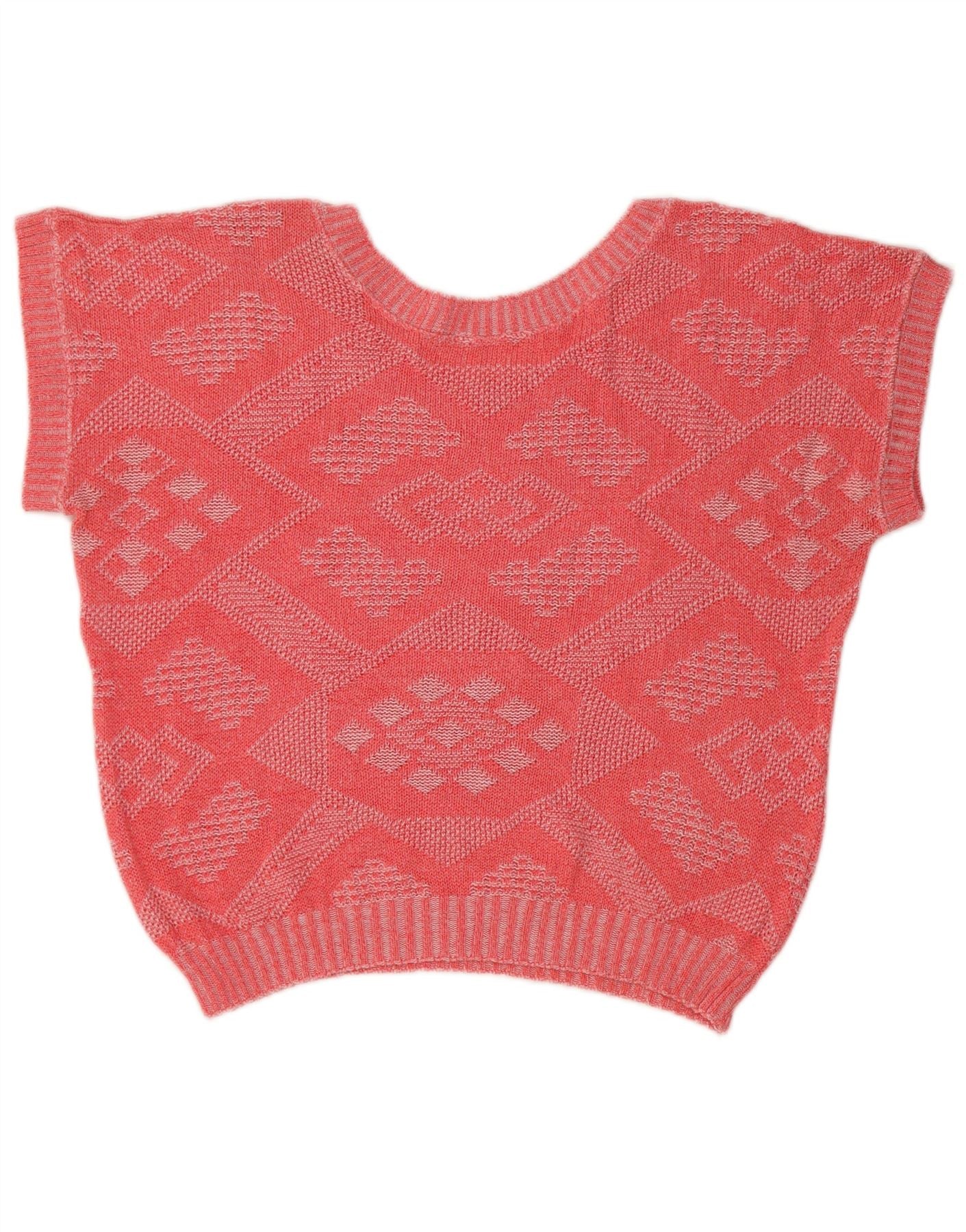 VINTAGE Womens Crop Boat Neck Jumper Sweater UK 14 Medium Pink