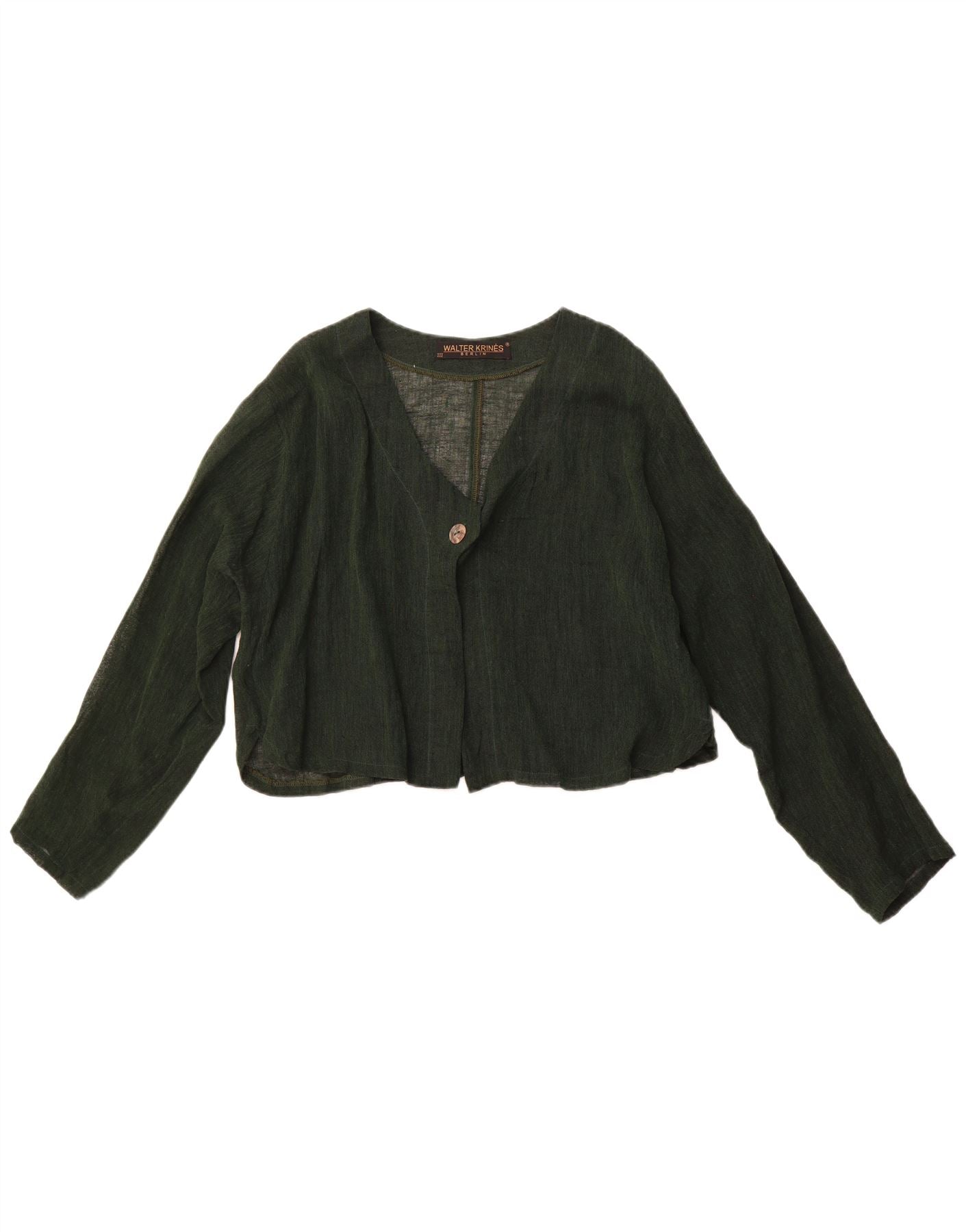 VINTAGE Womens Crop Cardigan Top UK 16 Large Green Bomuld